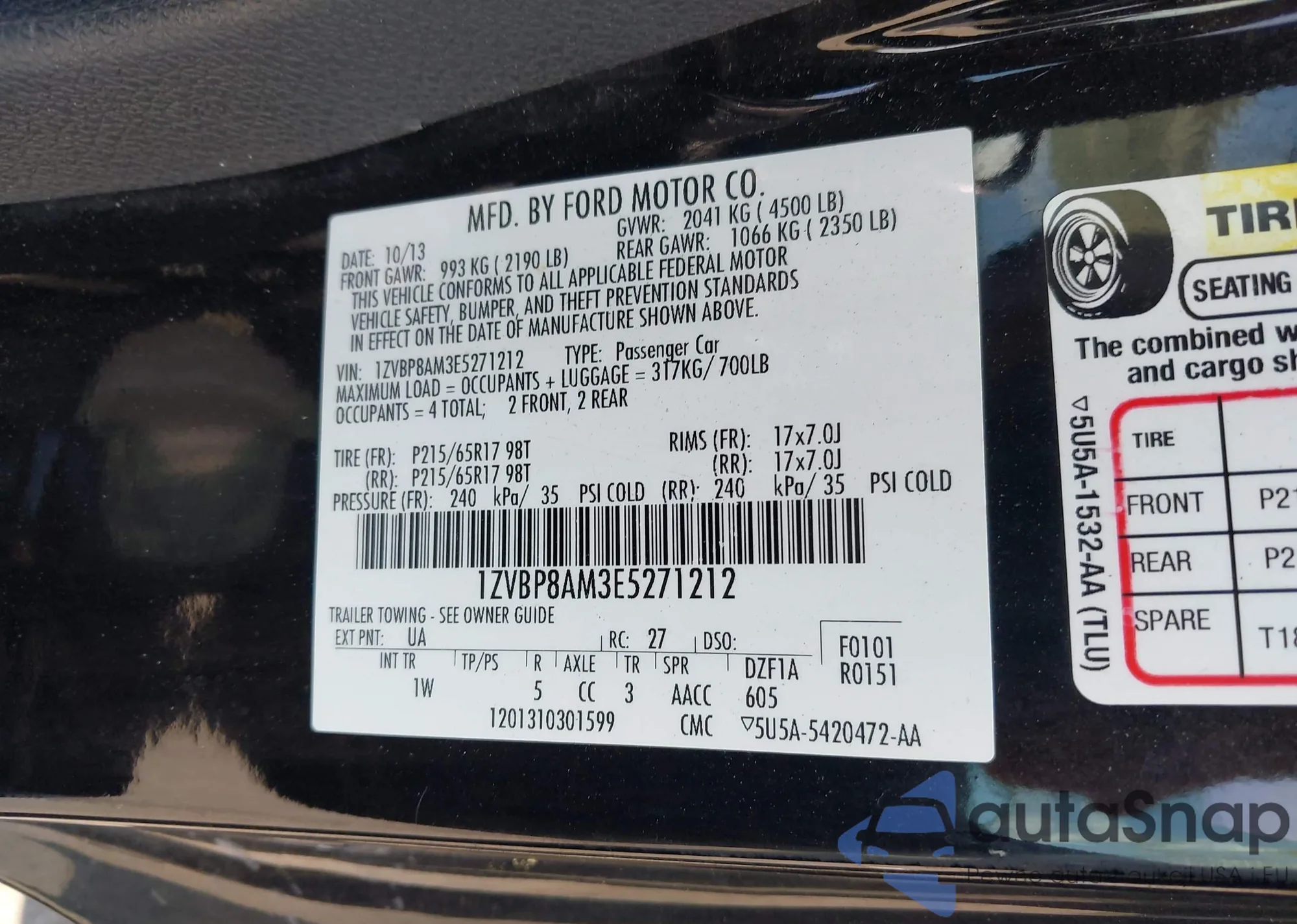 • VIN 1ZVBP8AM3E5271212