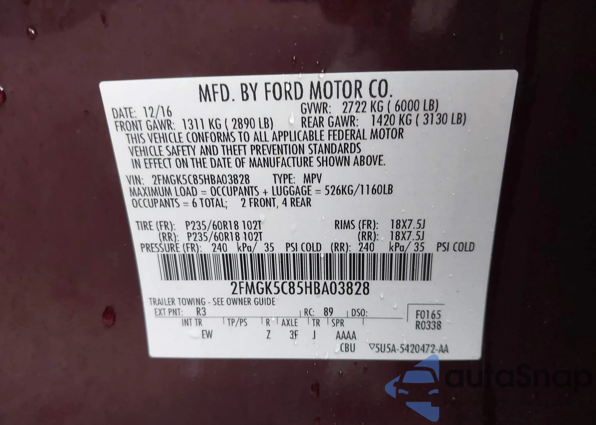 • VIN 2FMGK5C85HBA03828