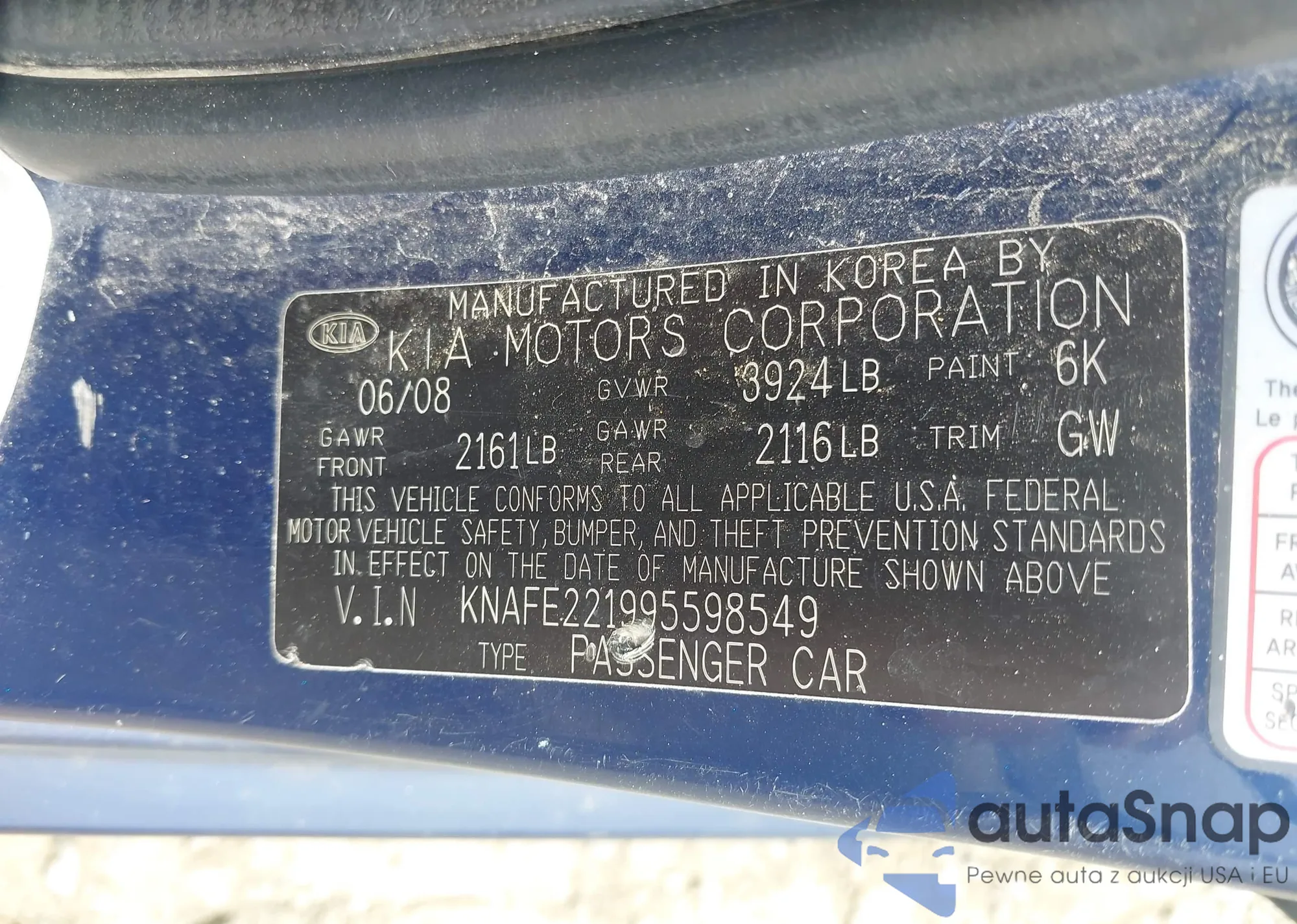 LOT: 42279957 VIN: KNAFE221995598549