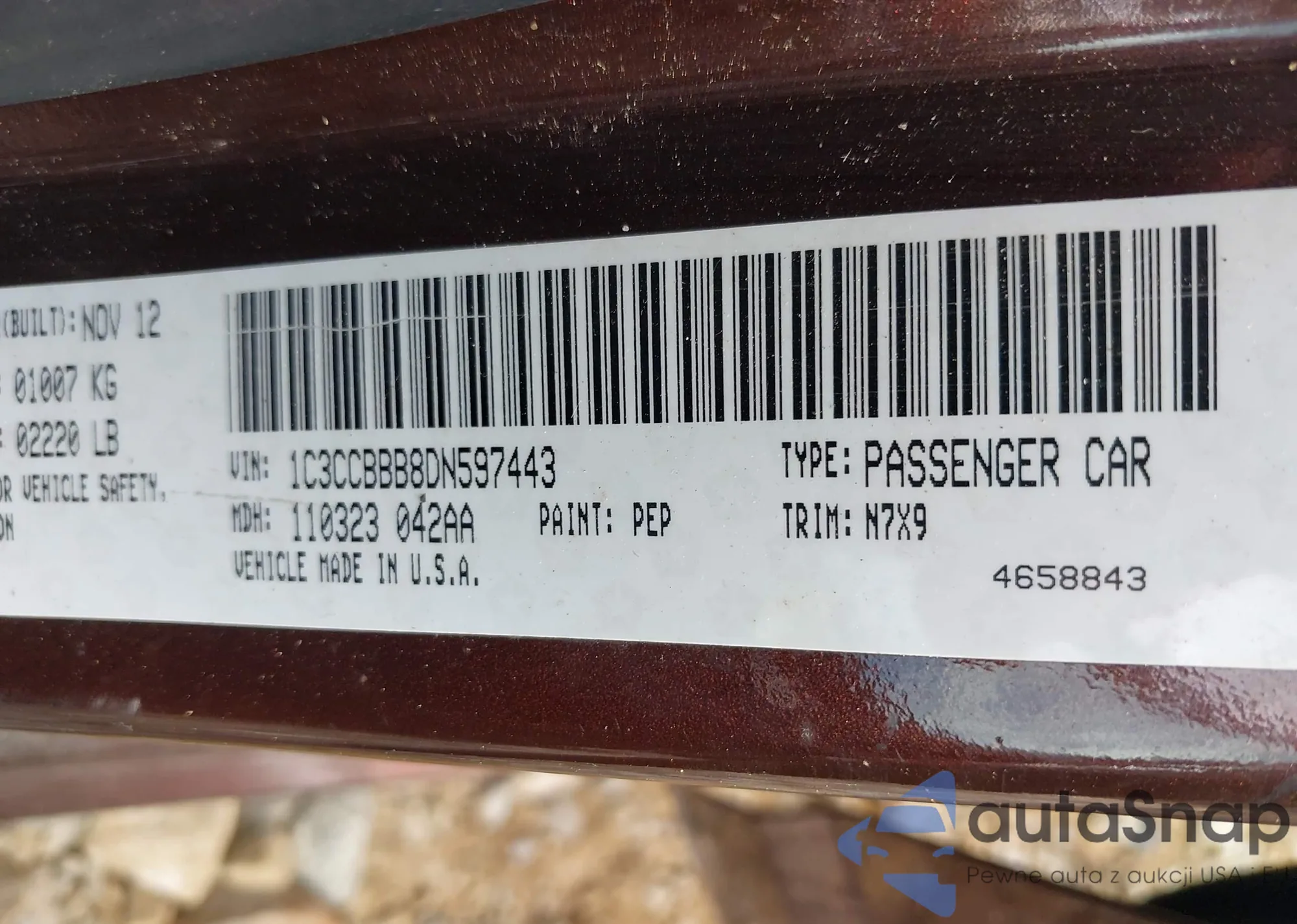 LOT: 42704755 VIN: 1C3CCBBB8DN597443