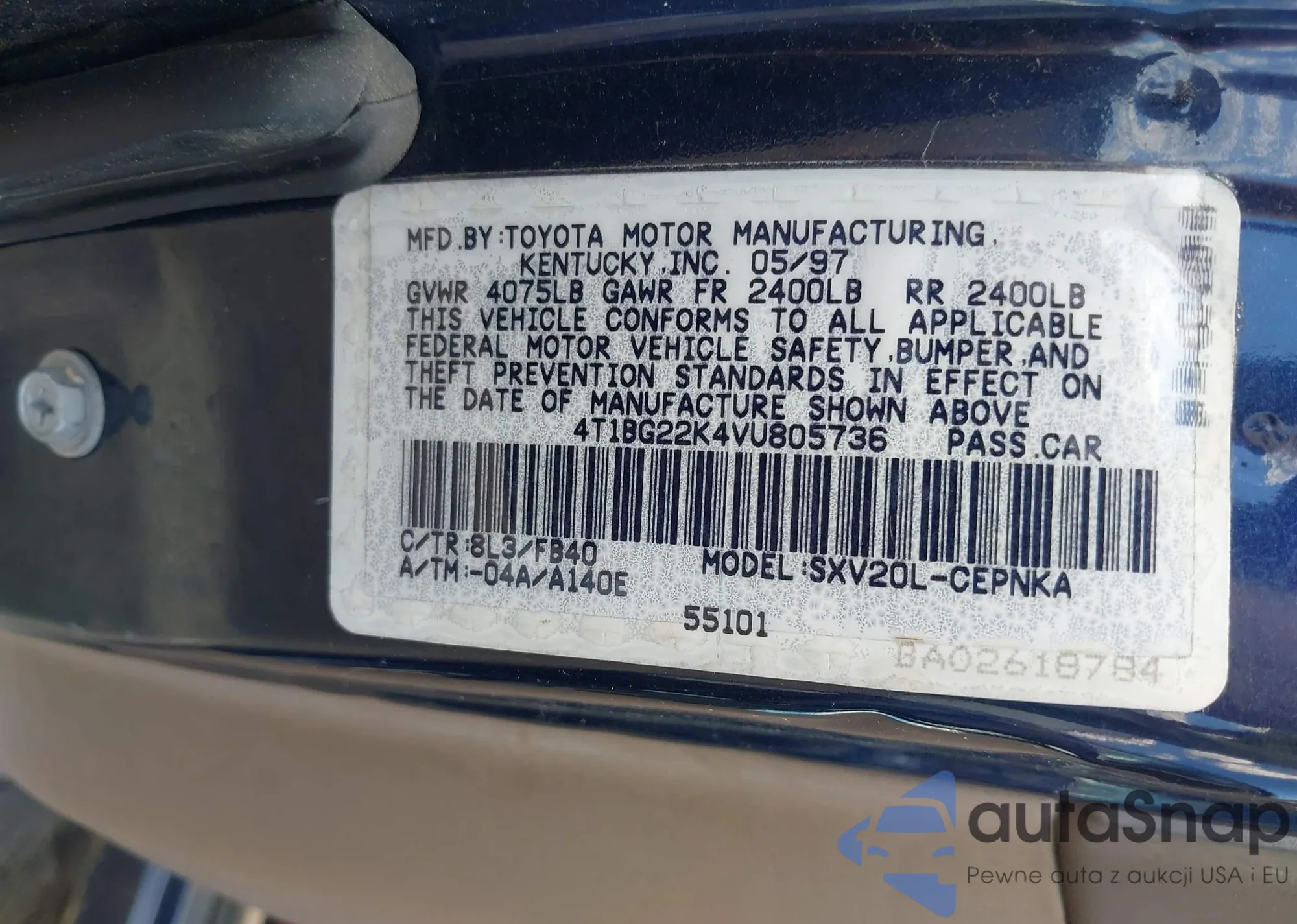 LOT: 42812876 VIN: 4T1BG22K4VU805736
