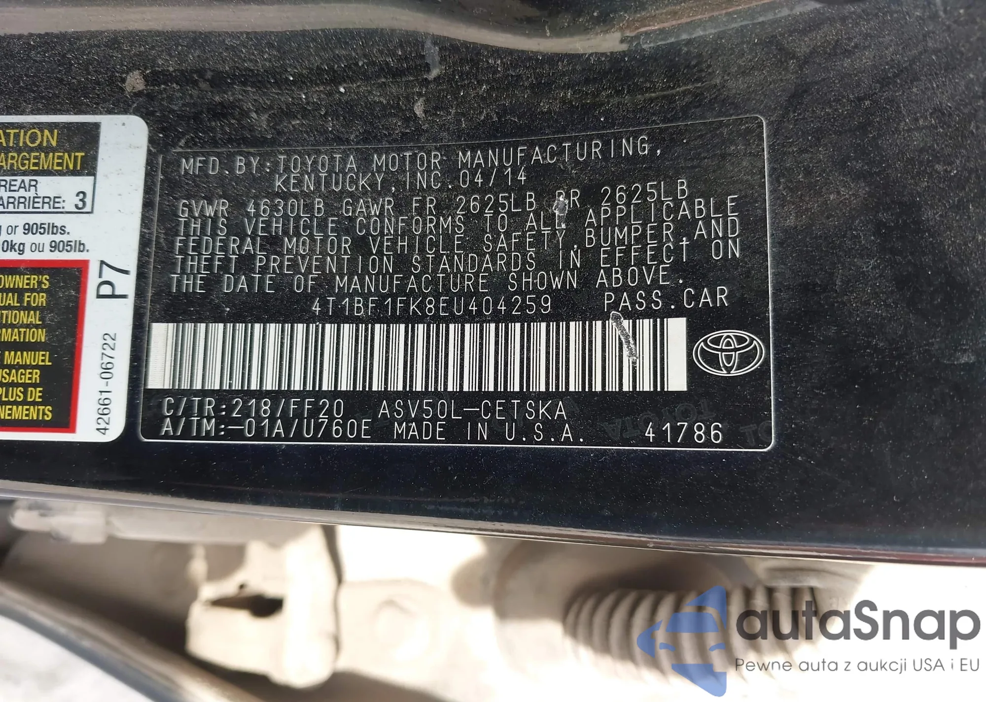 • VIN 4T1BF1FK8EU404259