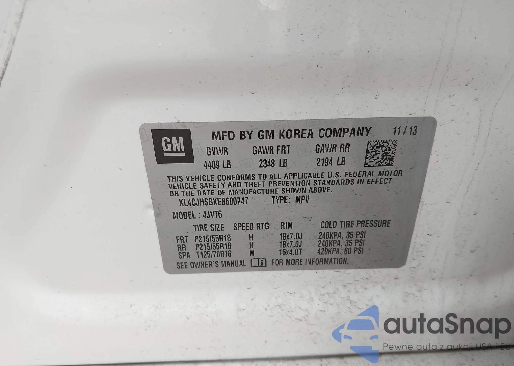 • VIN KL4CJHSBXEB600747