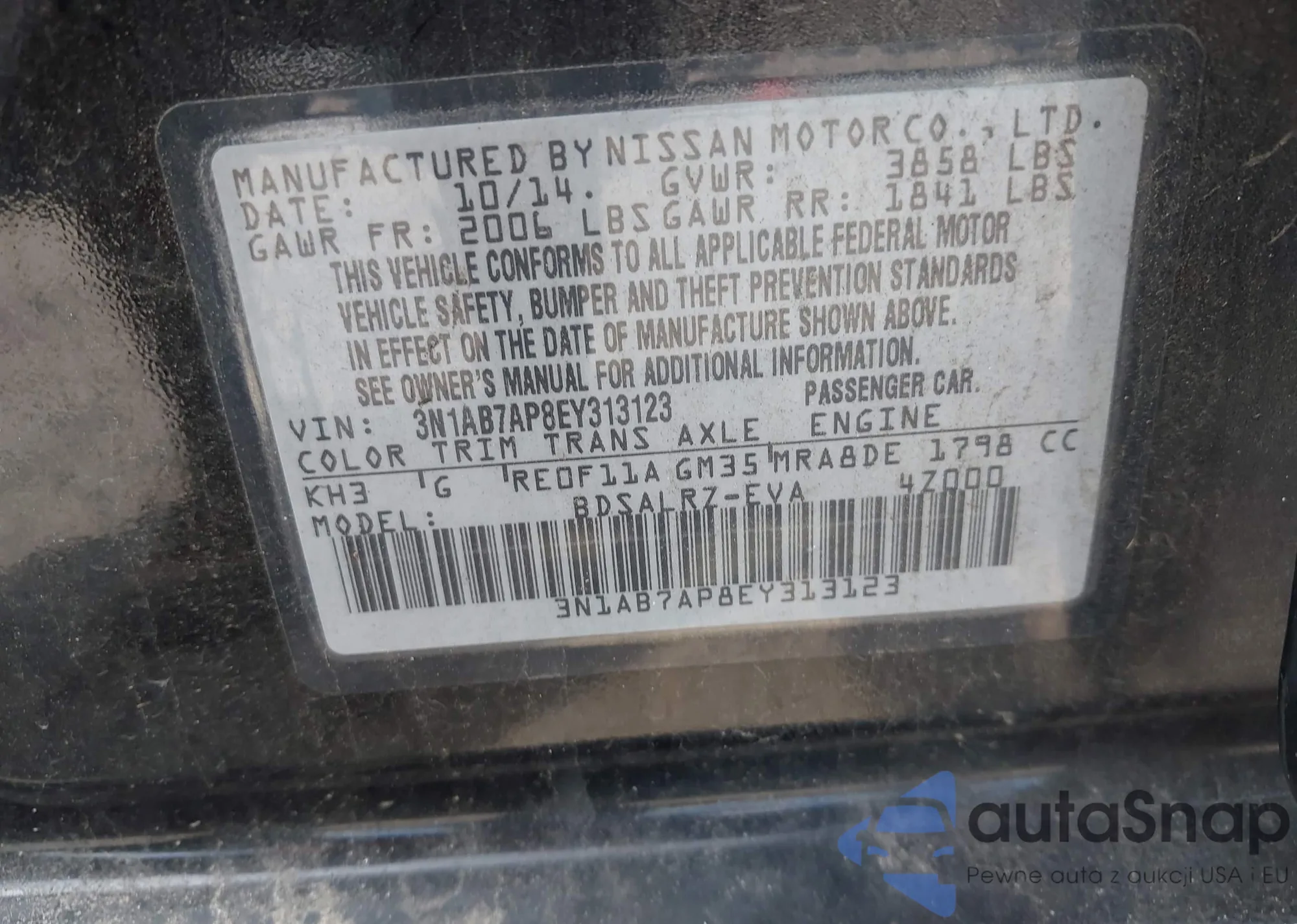 • VIN 3N1AB7AP8EY313123