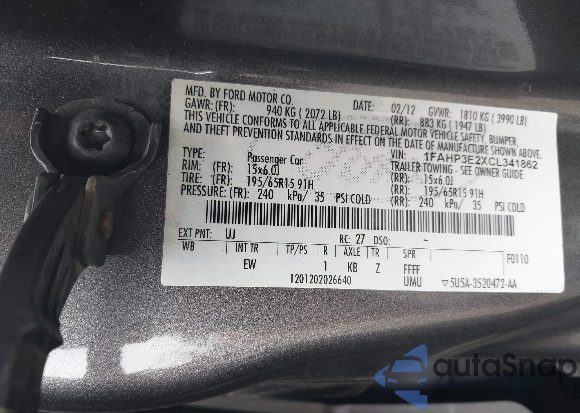 • VIN 1FAHP3FN2BW121234