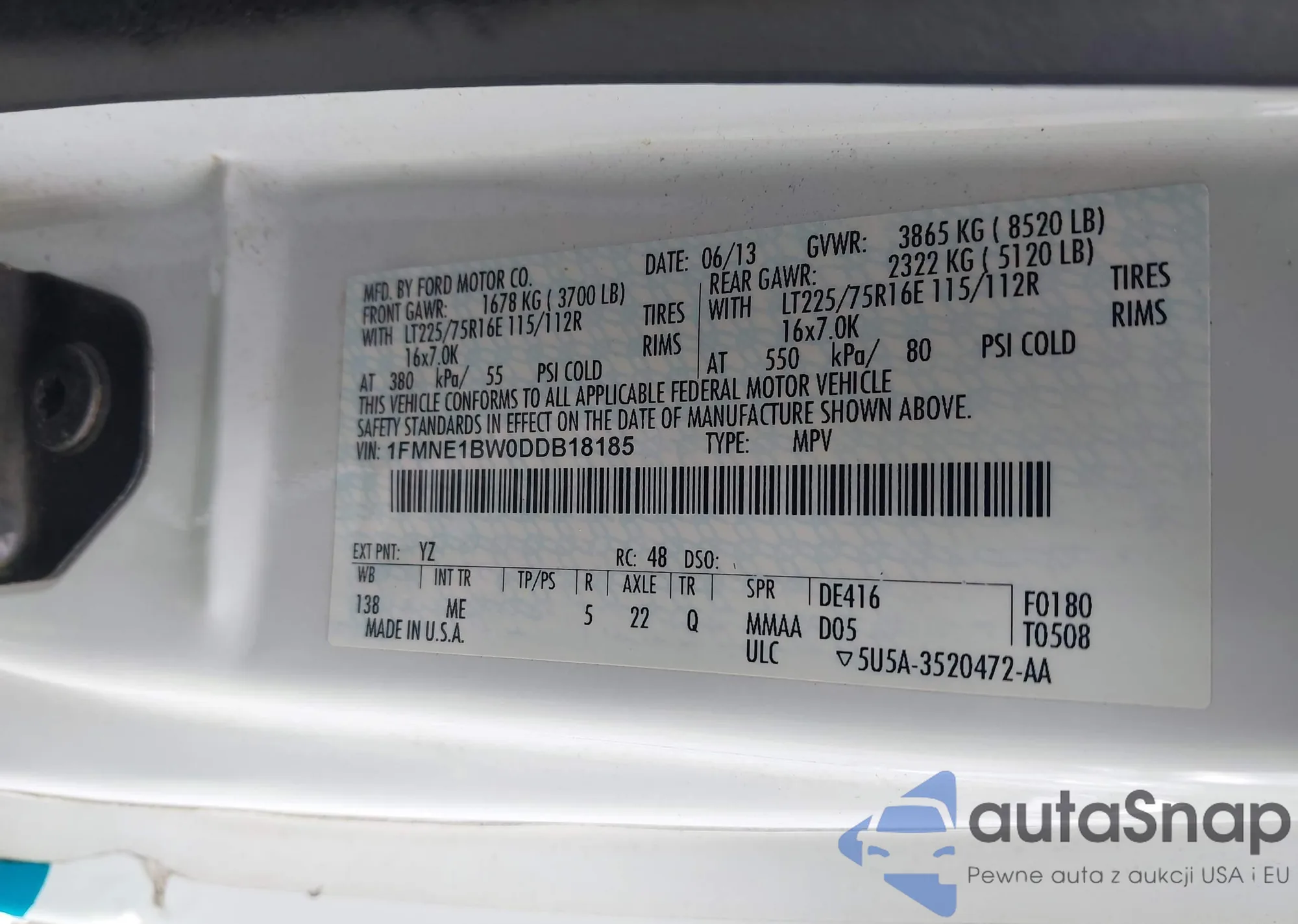 LOT: 42884418 VIN: 1FMNE1BW0DDB18185