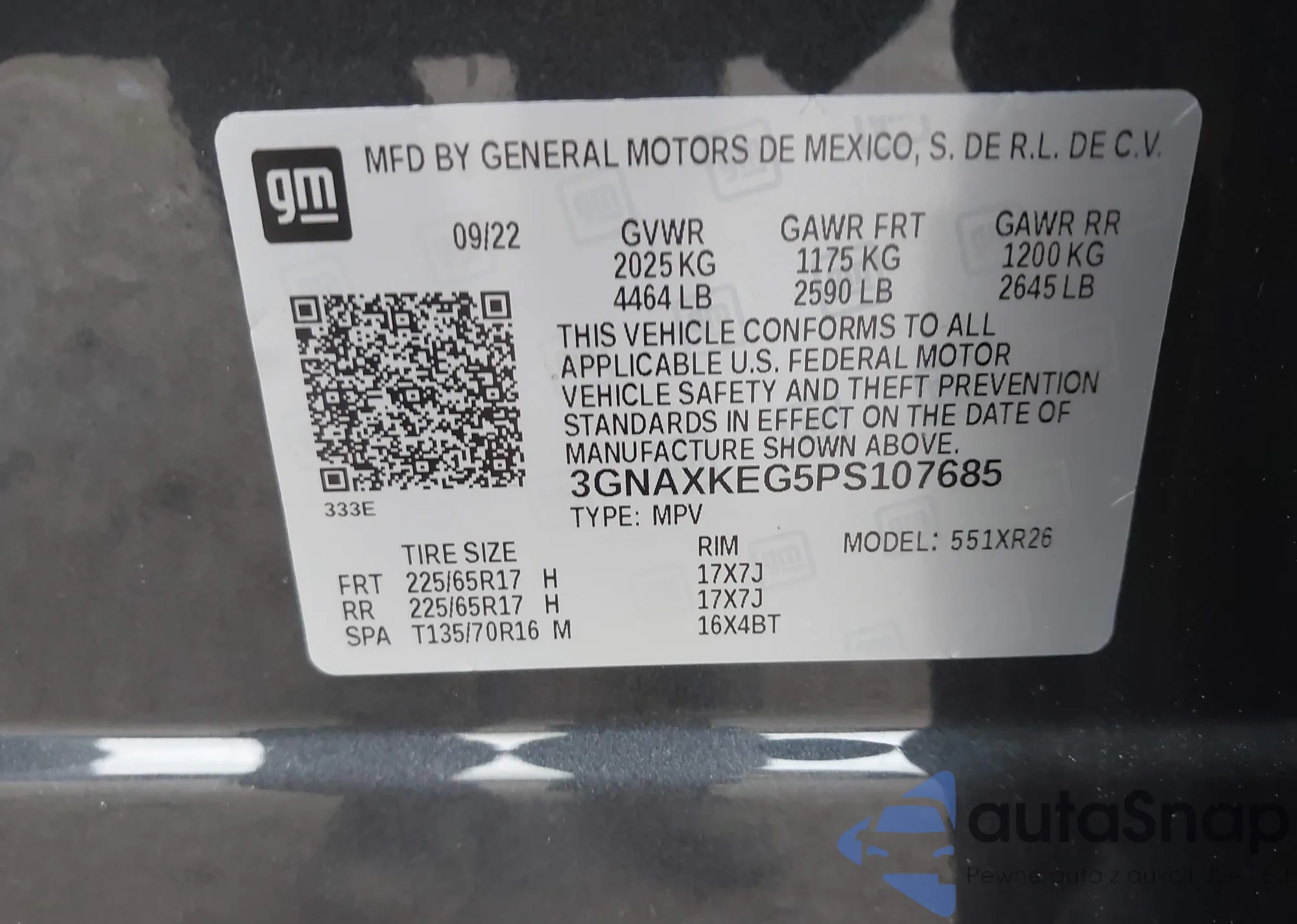 • VIN 3GNAXKEG5PS107685