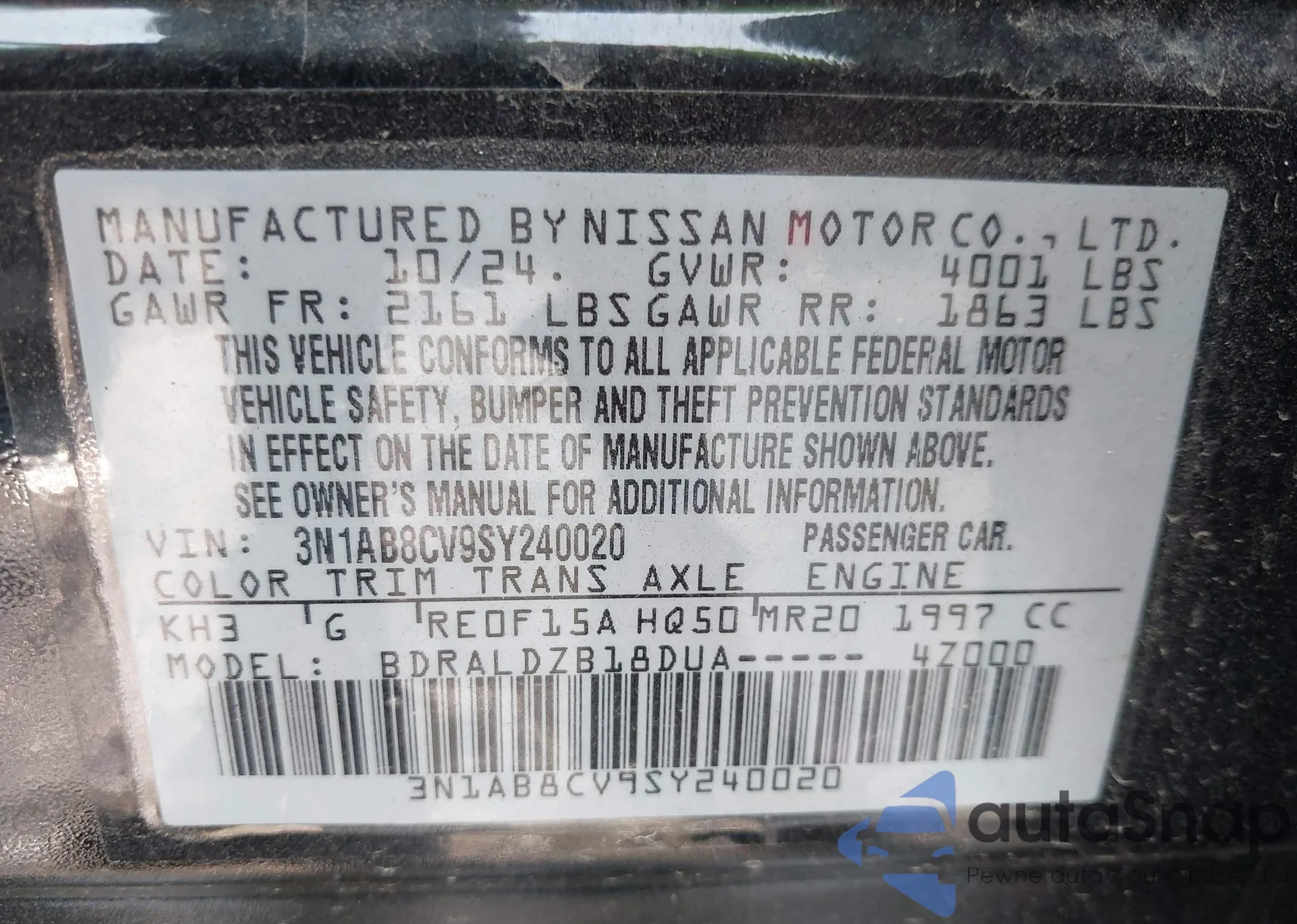• VIN 3N1AB8CV9SY240020
