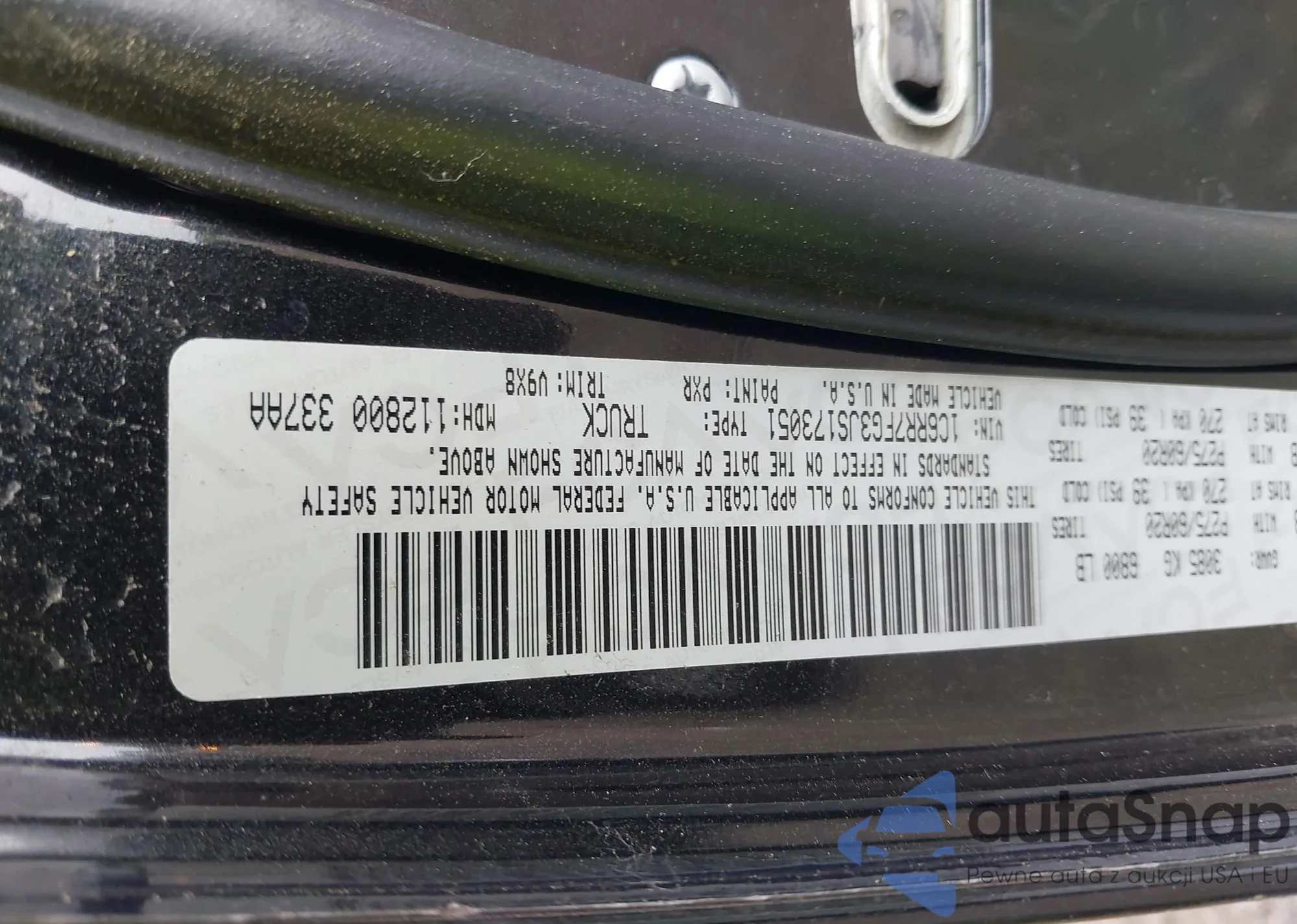 • VIN 3C6UR5CL7GG173456