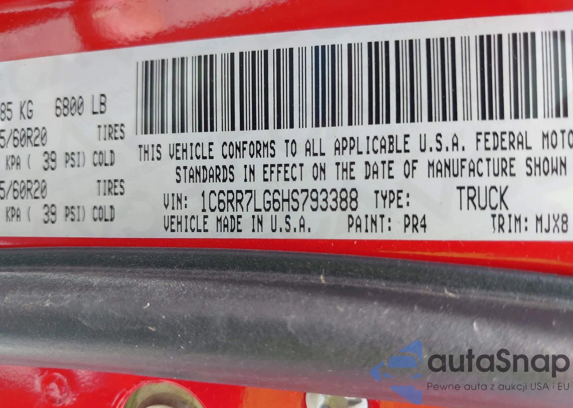 LOT: 42610328 VIN: 1C6RR7FG3JS173051