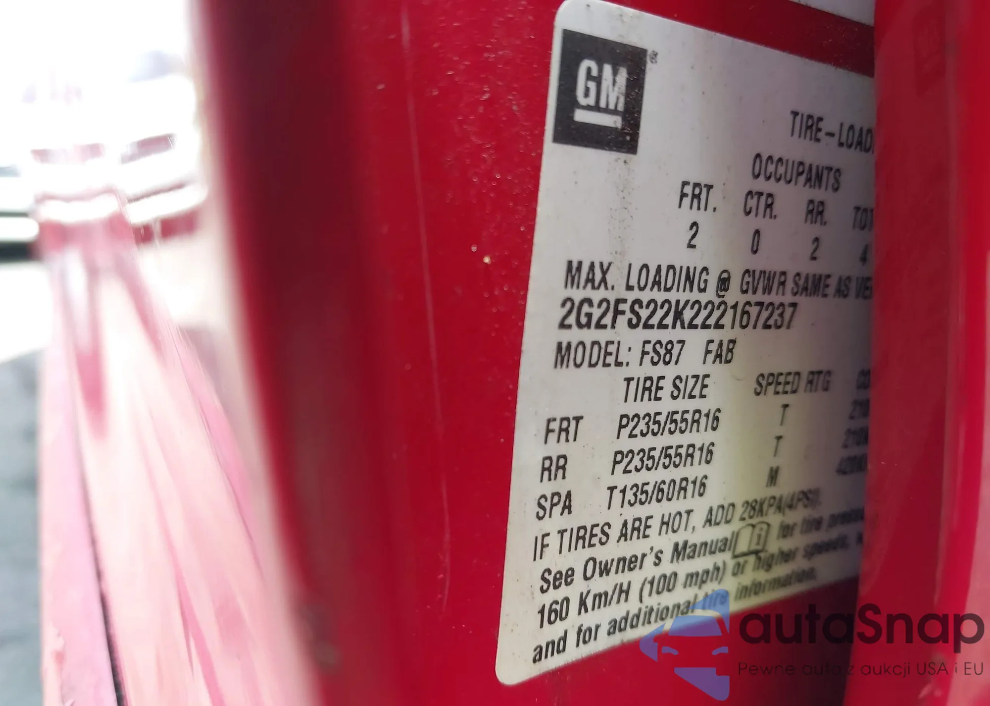• VIN 2G2FS22K222167237
