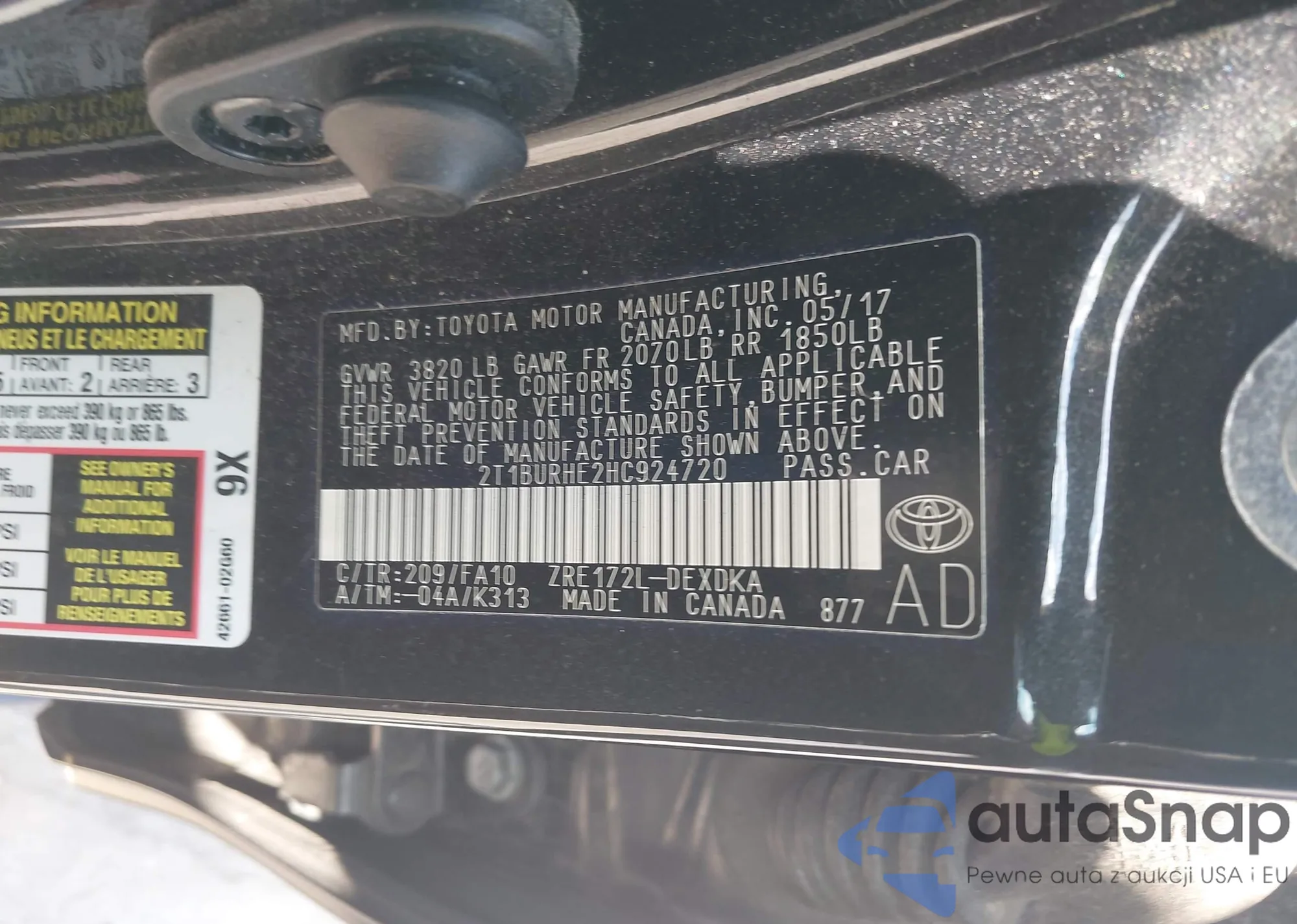 LOT: 42556922 VIN: 2T1BURHE2HC924720