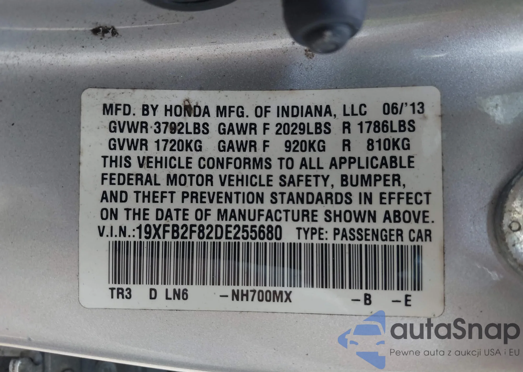 LOT: 42685310 VIN: 19XFB2F82DE255680