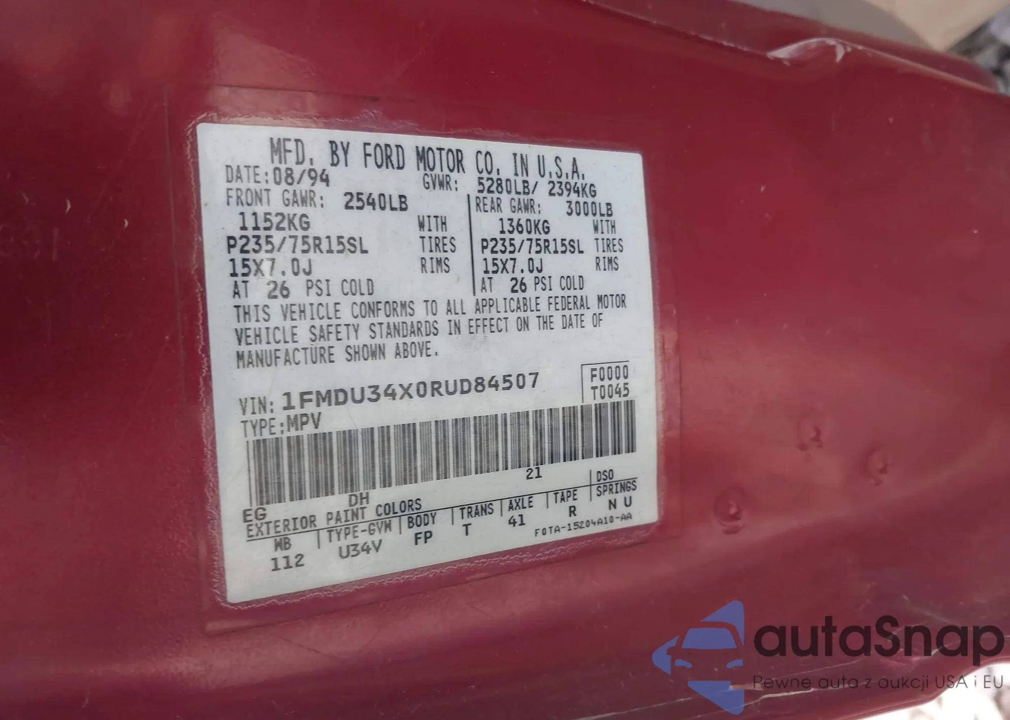 LOT: 42711982 VIN: 1FMDU34X0RUD84507