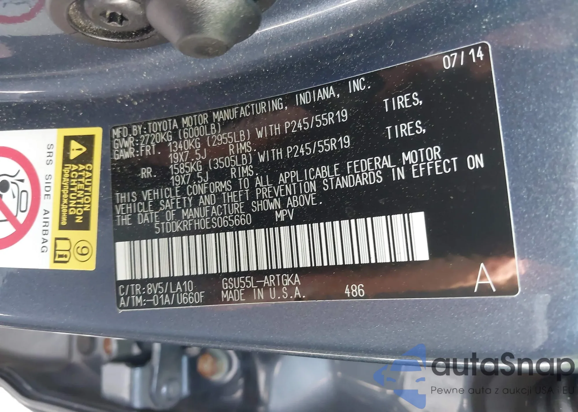 LOT: 42527586 VIN: 5TDDKRFH0ES065660