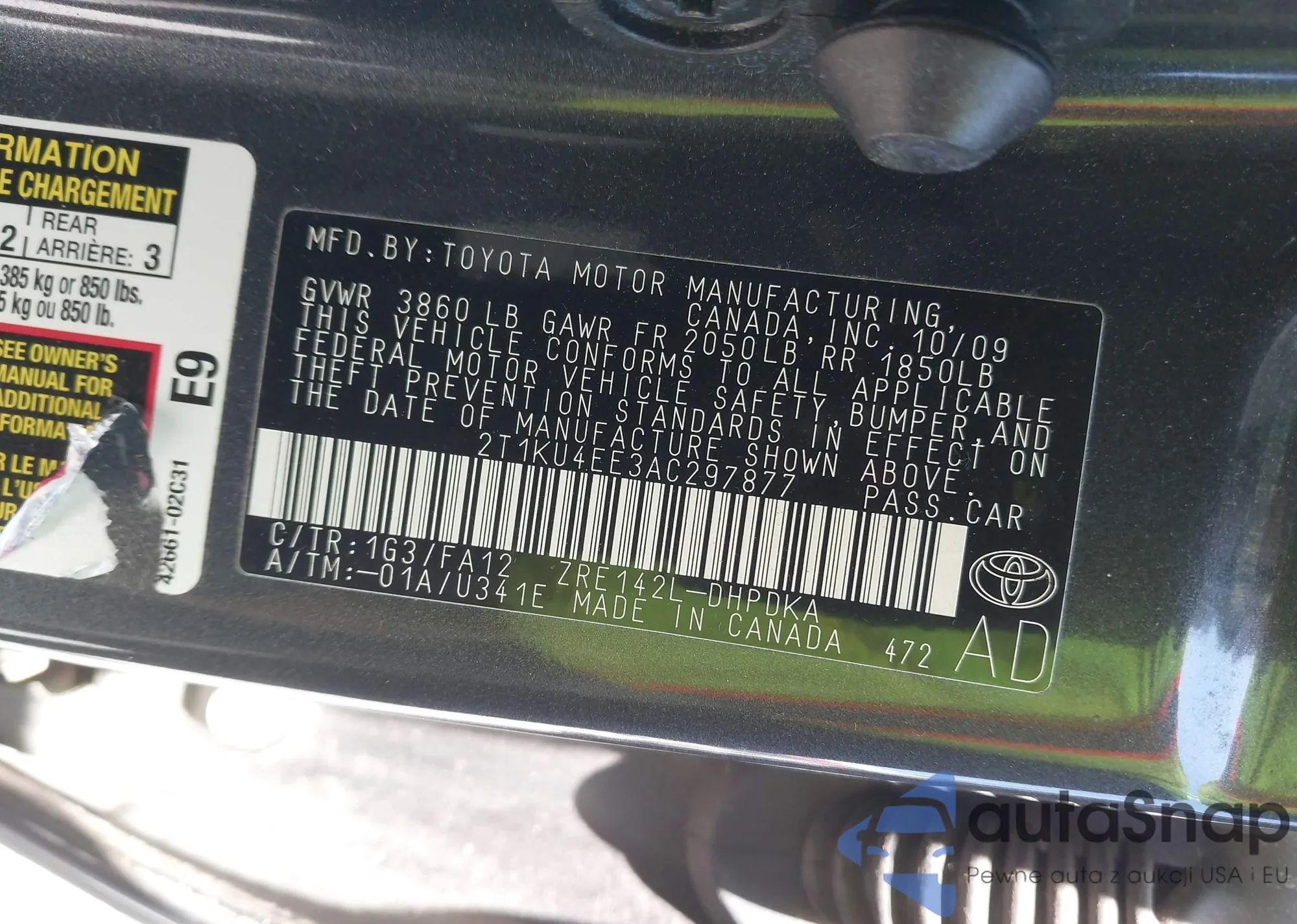 • VIN 2T1KU4EE3AC297877