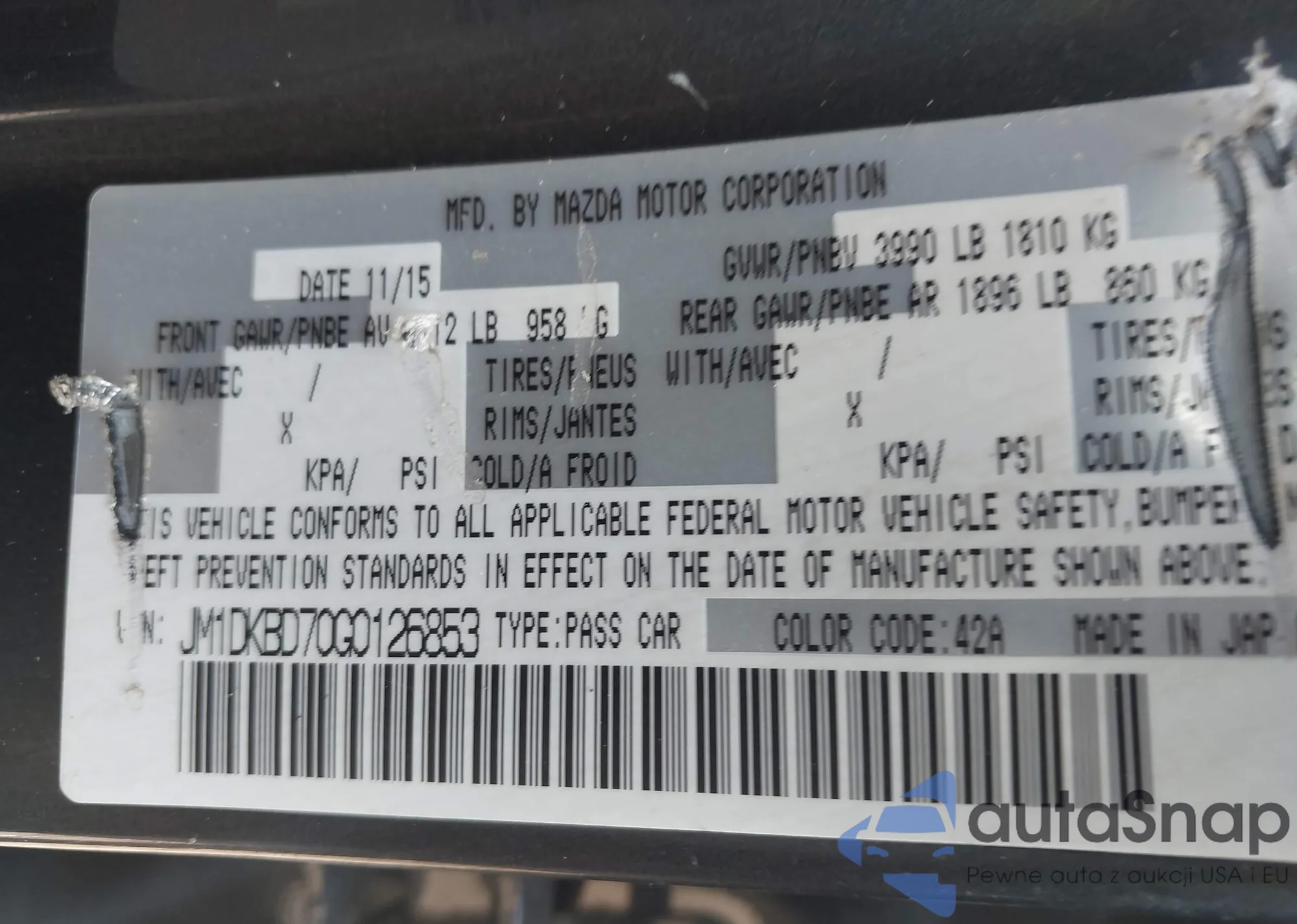 LOT: 42835366 VIN: JM1DKBD70G0126853