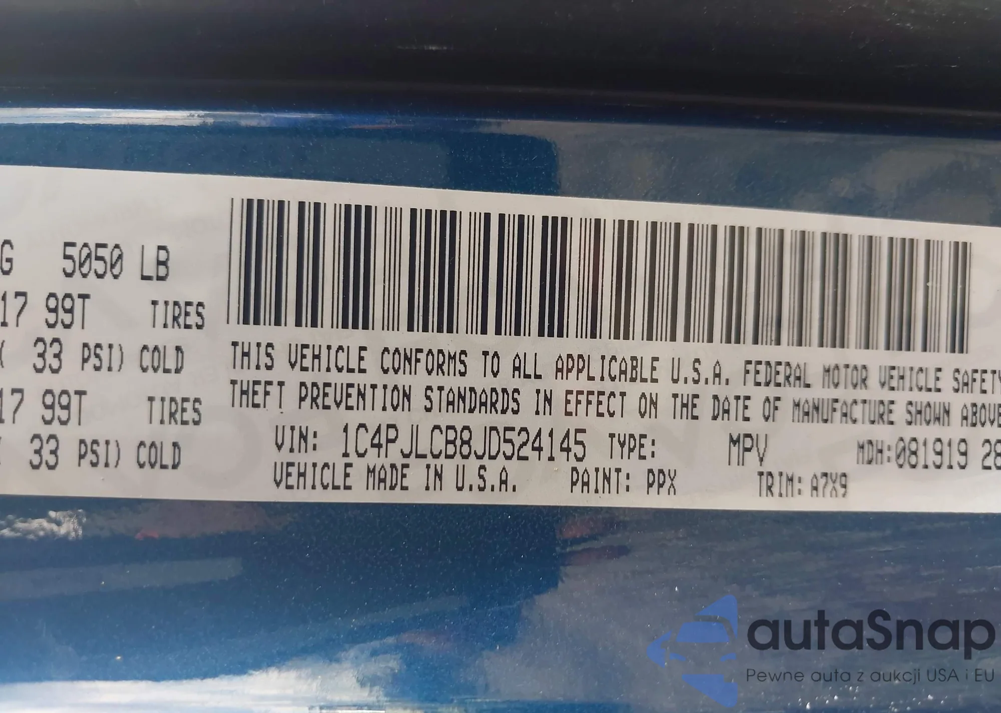 • VIN 1C4PJLCB8JD524145