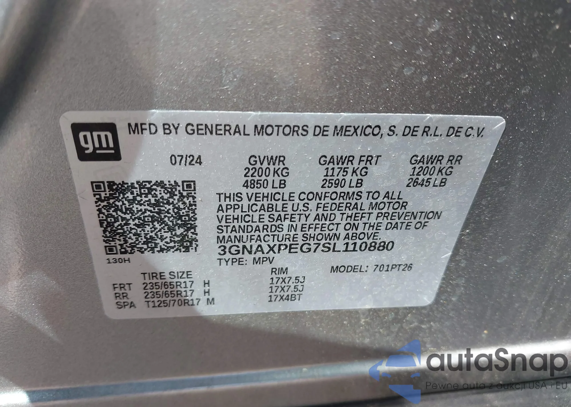 LOT: 42782075 VIN: 3GNAXPEG7SL110880