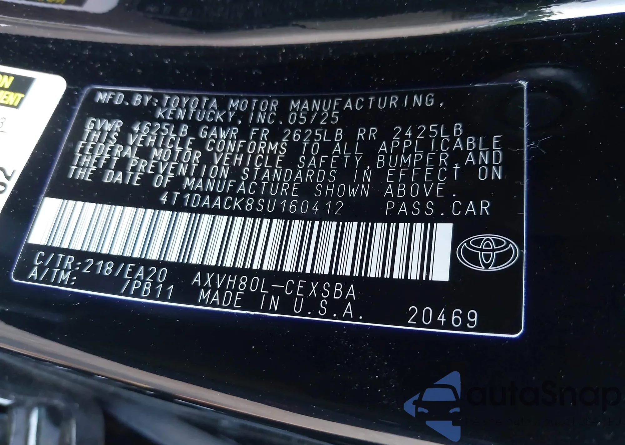 • VIN 4T1DAACK8SU160412