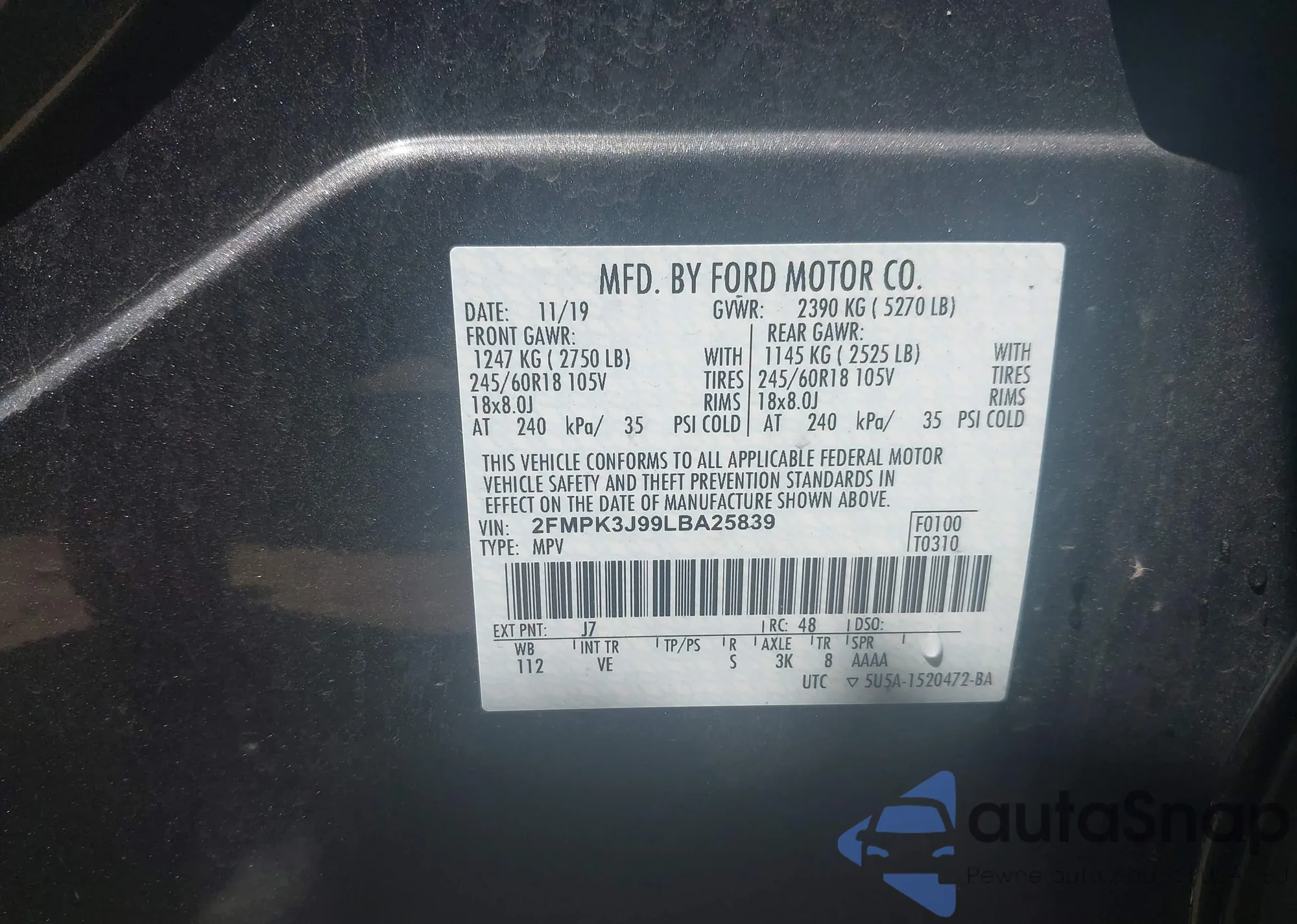 • VIN 2FMPK3J99LBA25839