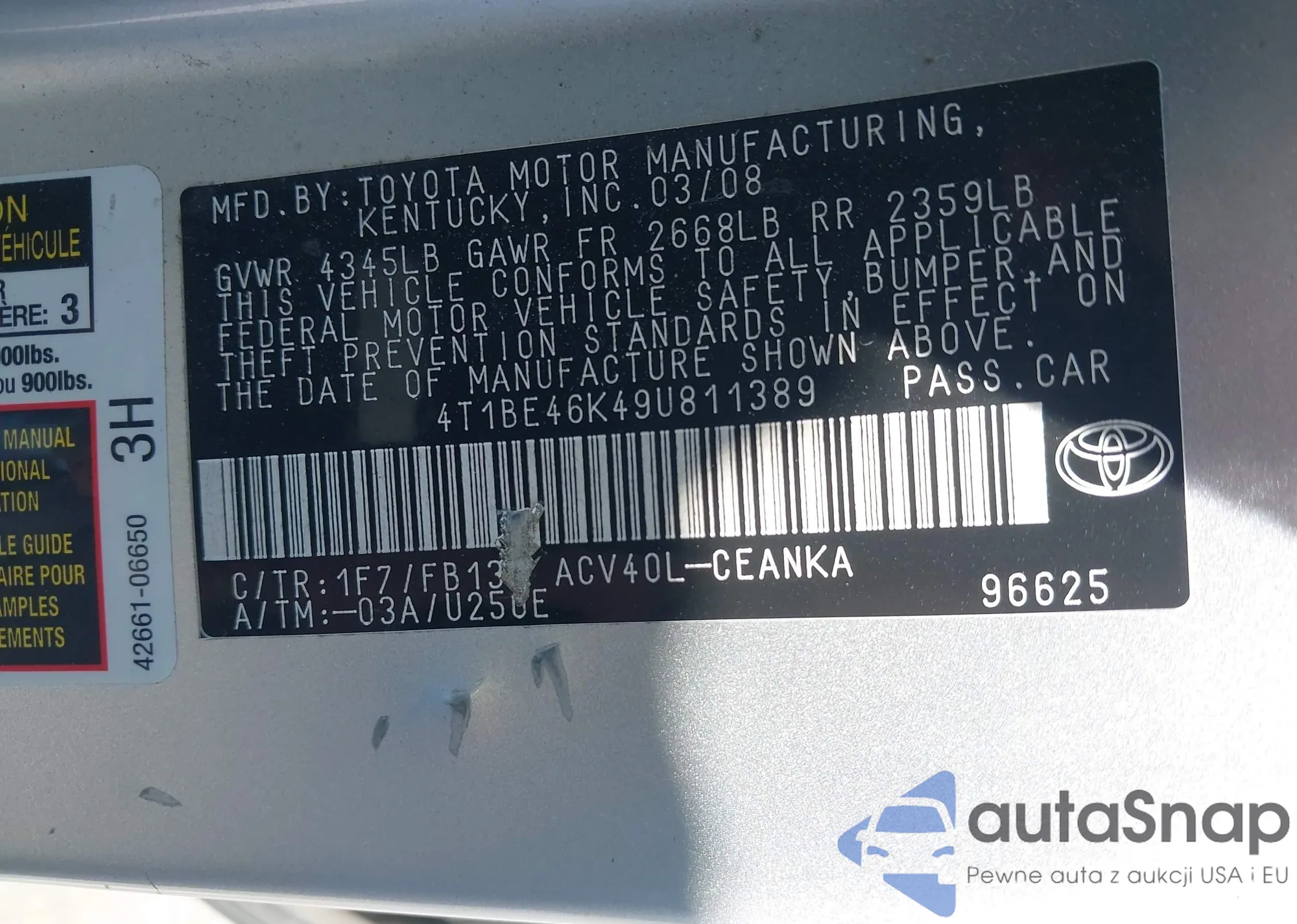 • VIN 4T1BF1FK0EU370740