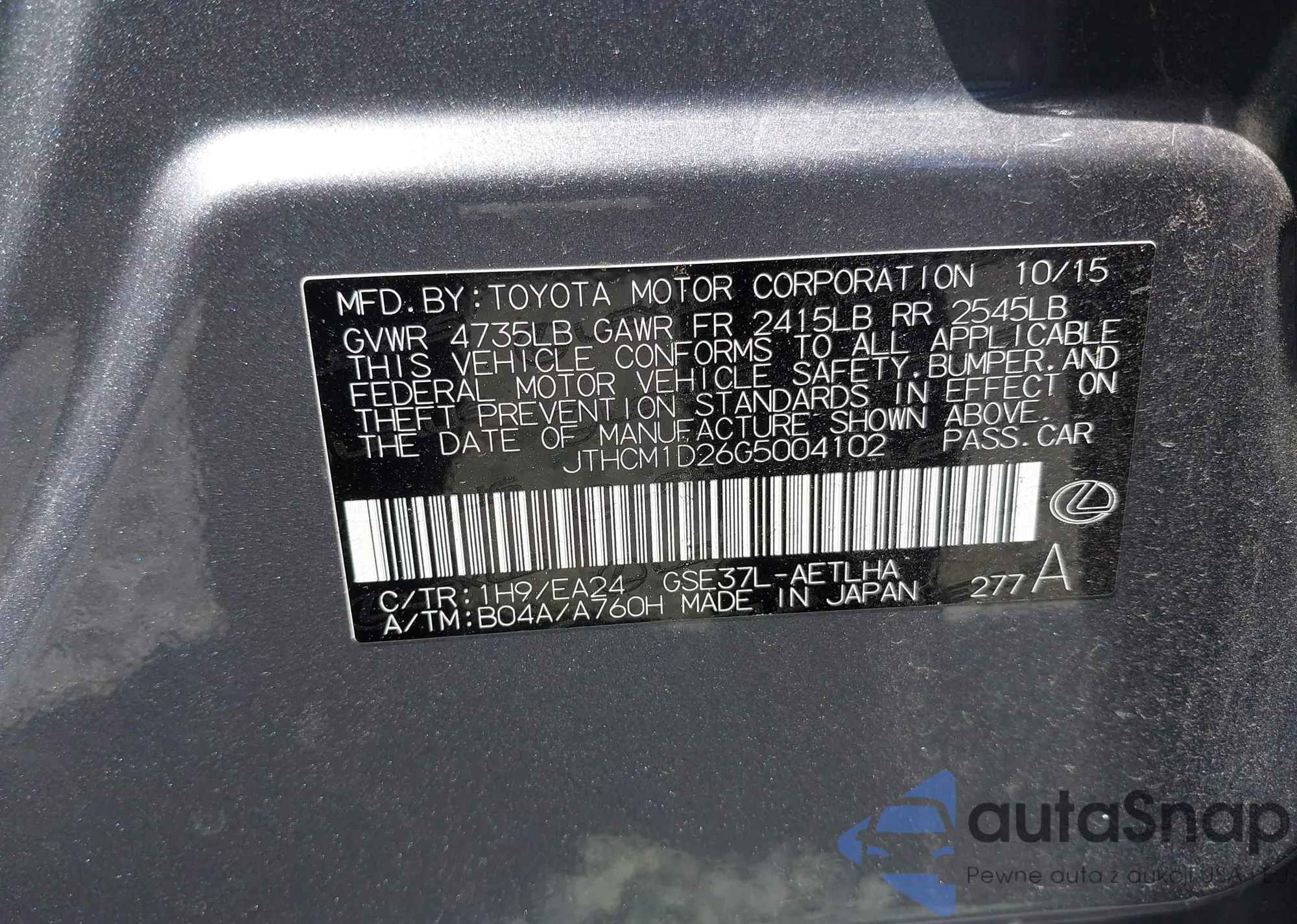 LOT: 42791537 VIN: JHMFA3F26AS006892