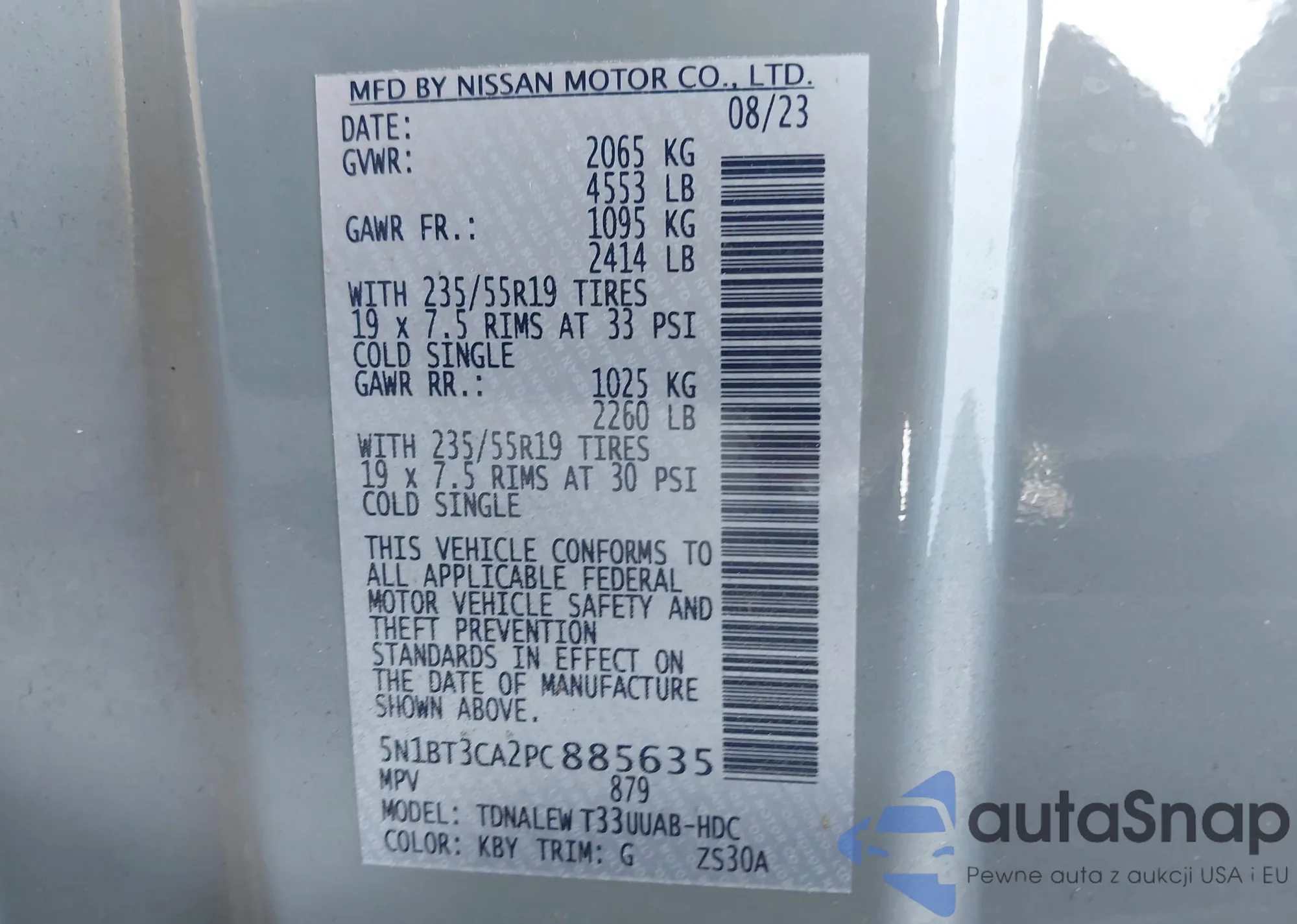 LOT: 42920226 VIN: 5N1BT3CA2PC885635