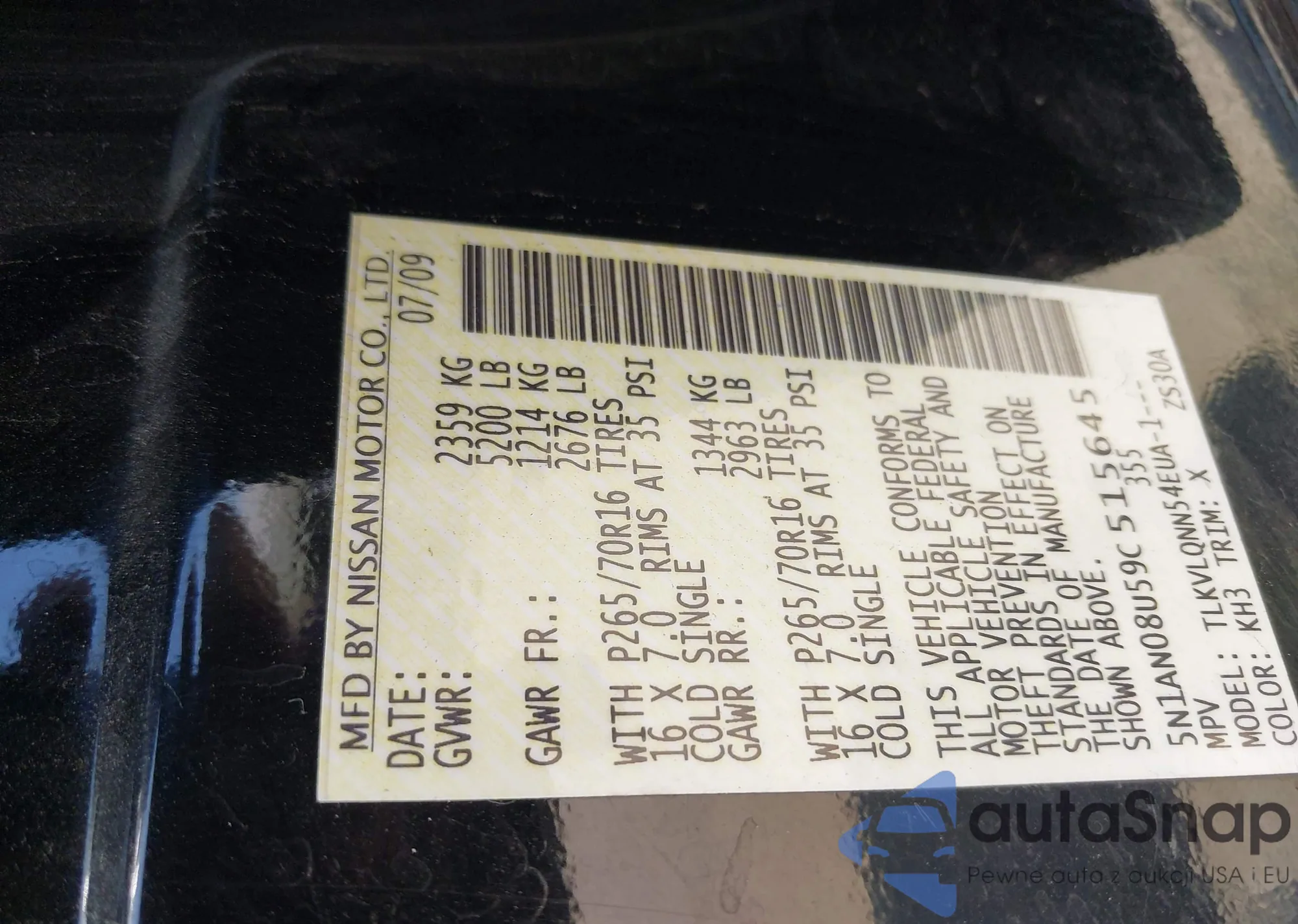 • VIN 5N1AN08U59C515645