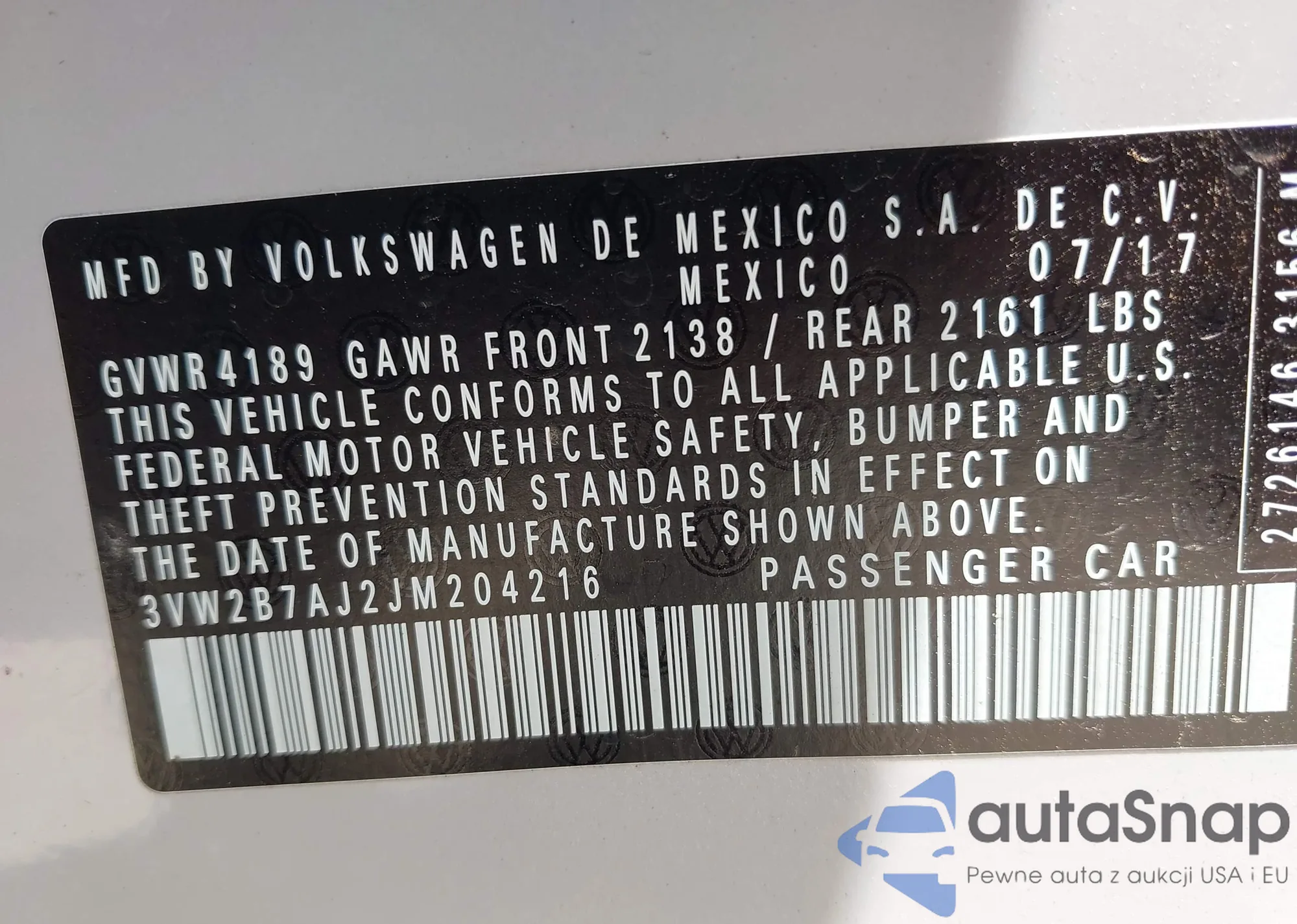• VIN 3VW2B7AJ2JM204216