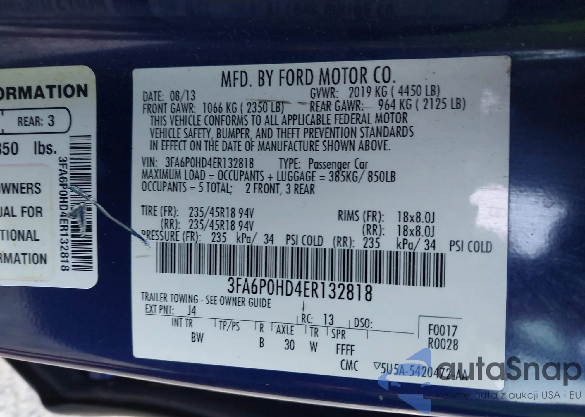 • VIN 3FA6P0HD4ER132818
