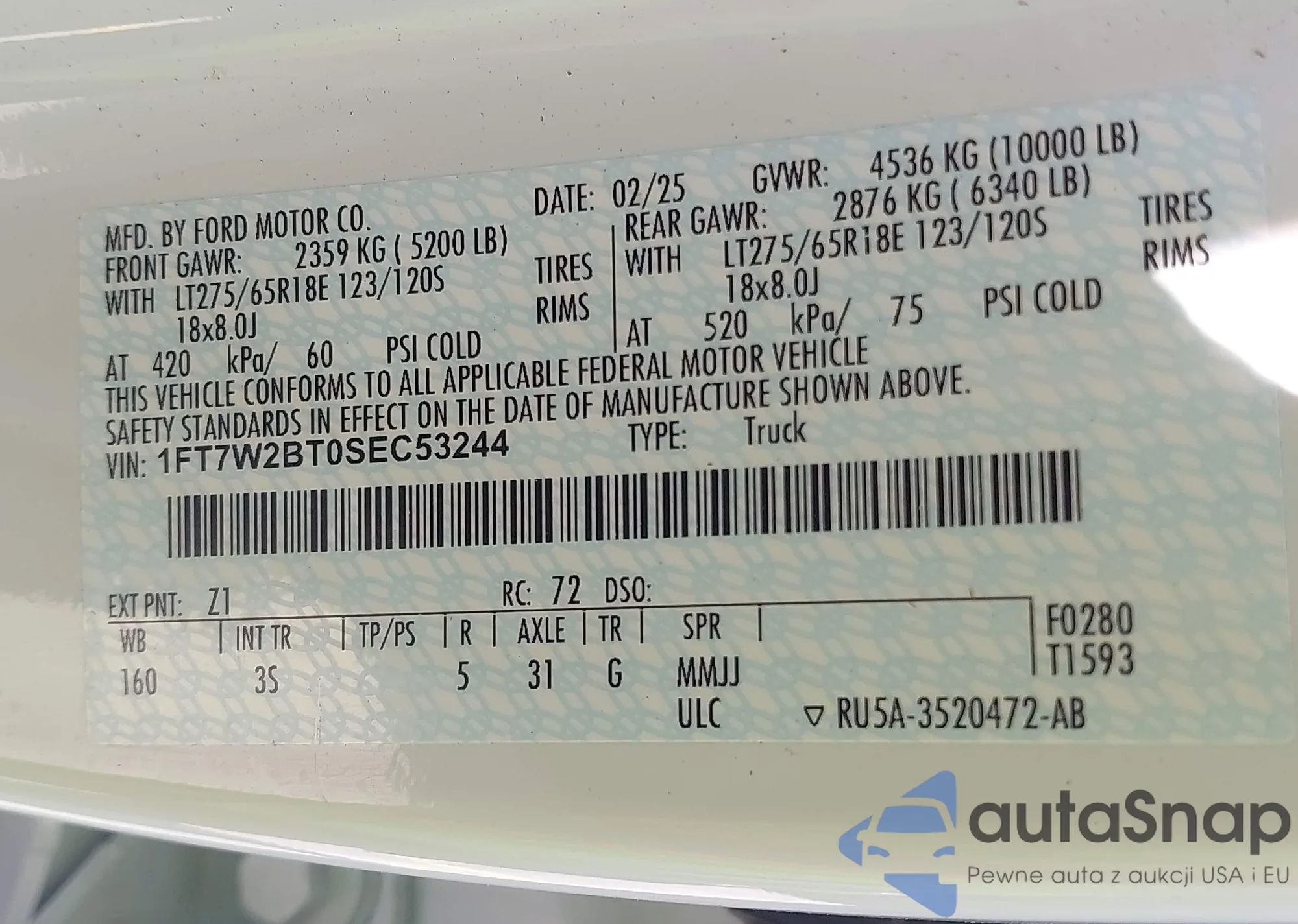 LOT: 42899363 VIN: 2FABP7BV6BX101754