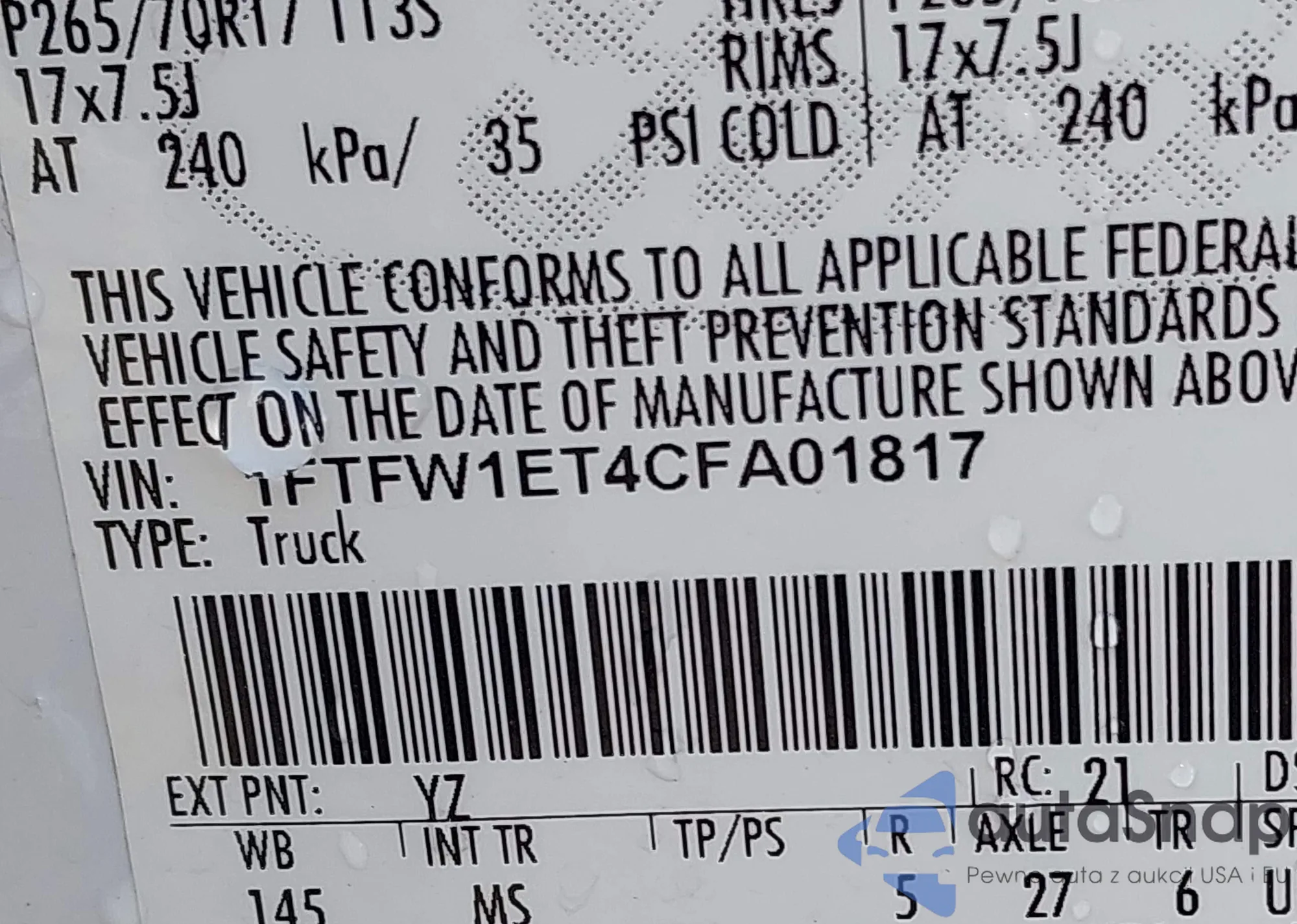 • VIN 1FTFW1ET9CFA11033