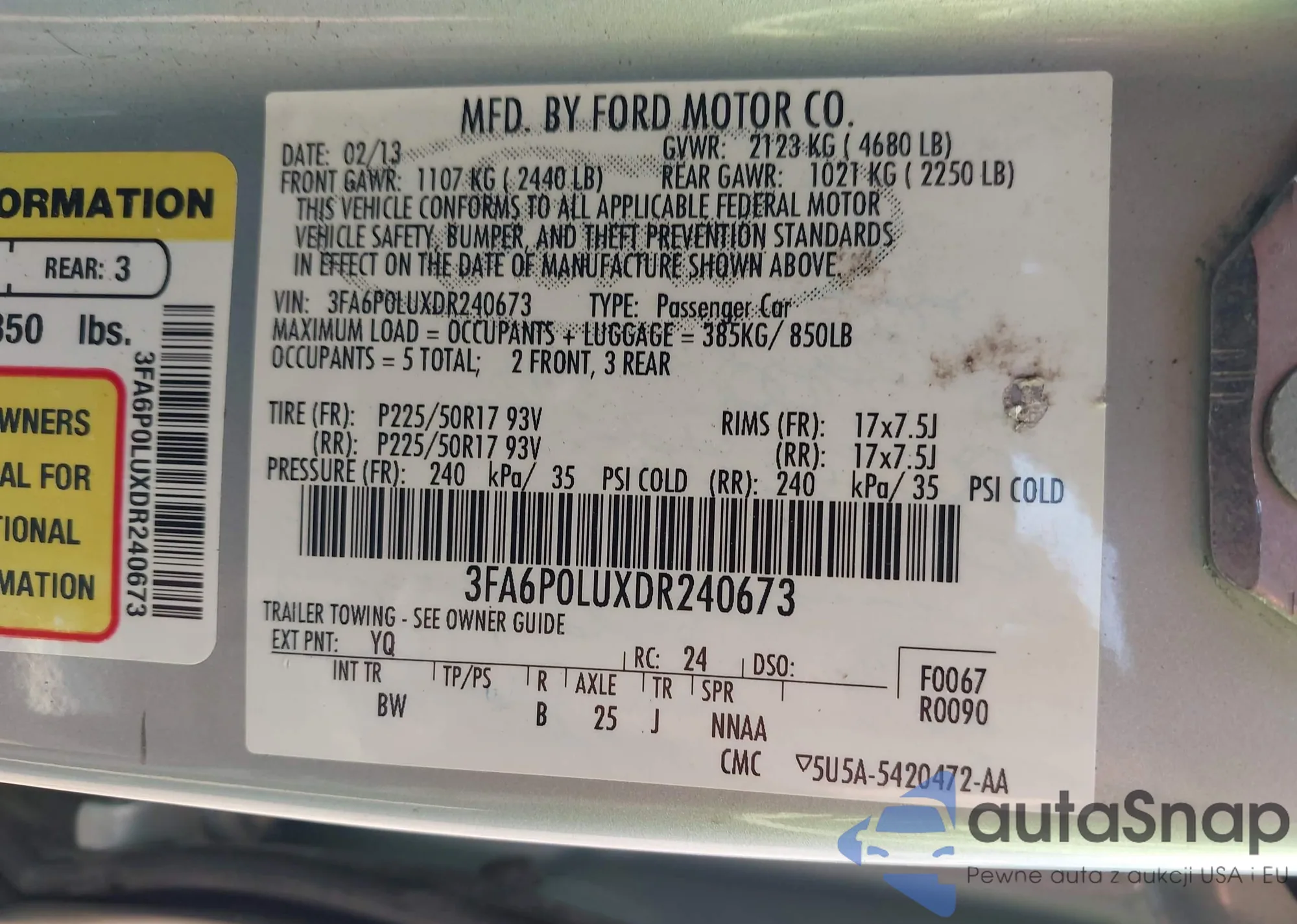 • VIN 3FA6P0LUXDR240673
