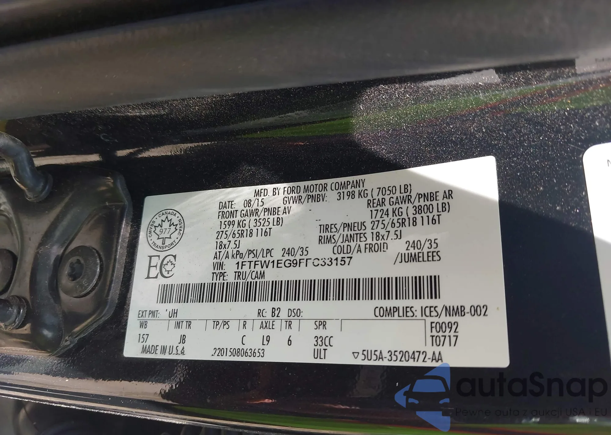 • VIN 1FTFW1EG9FFC33157