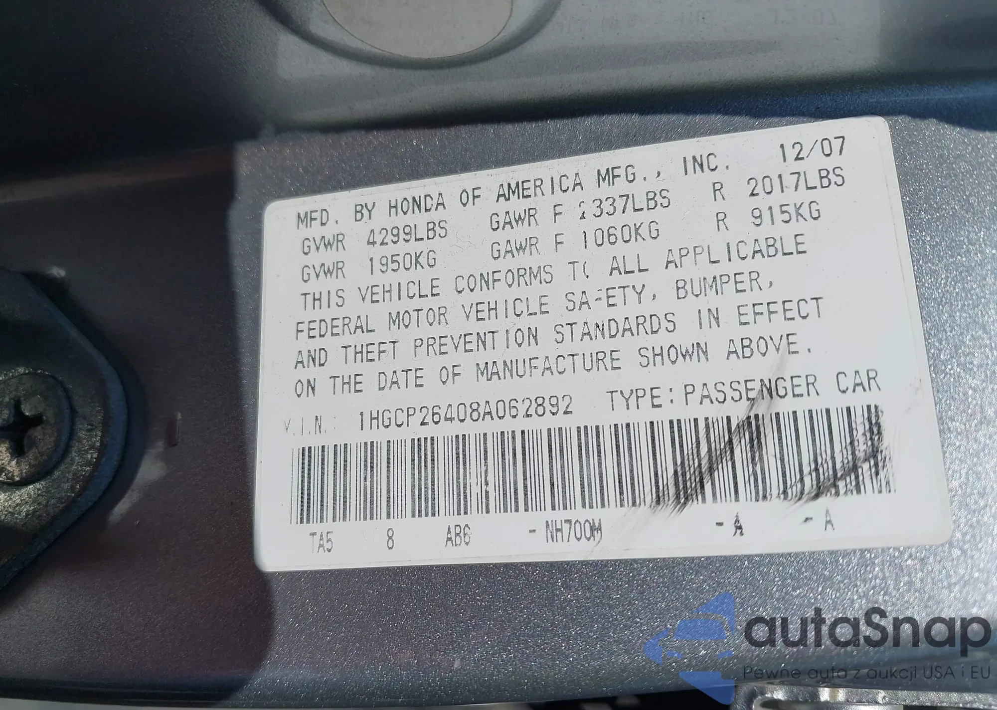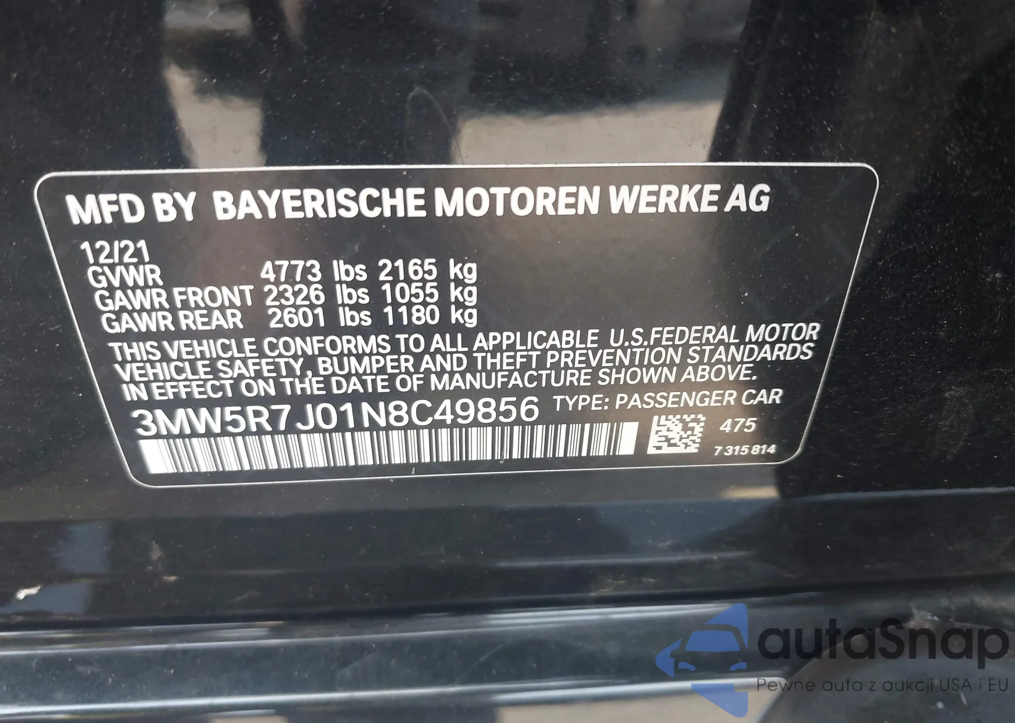 LOT: 42835634 VIN: 3MW5R7J01N8C49856