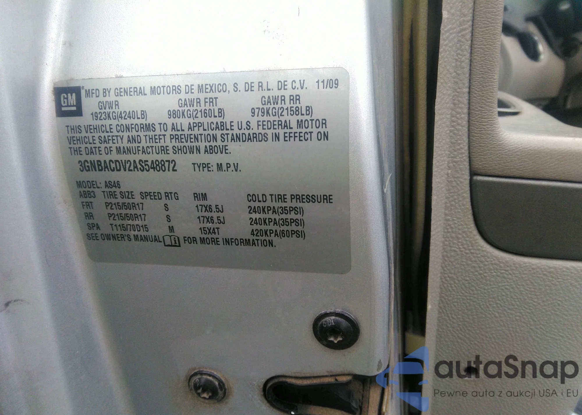 • VIN 3GNBACDV2AS548872