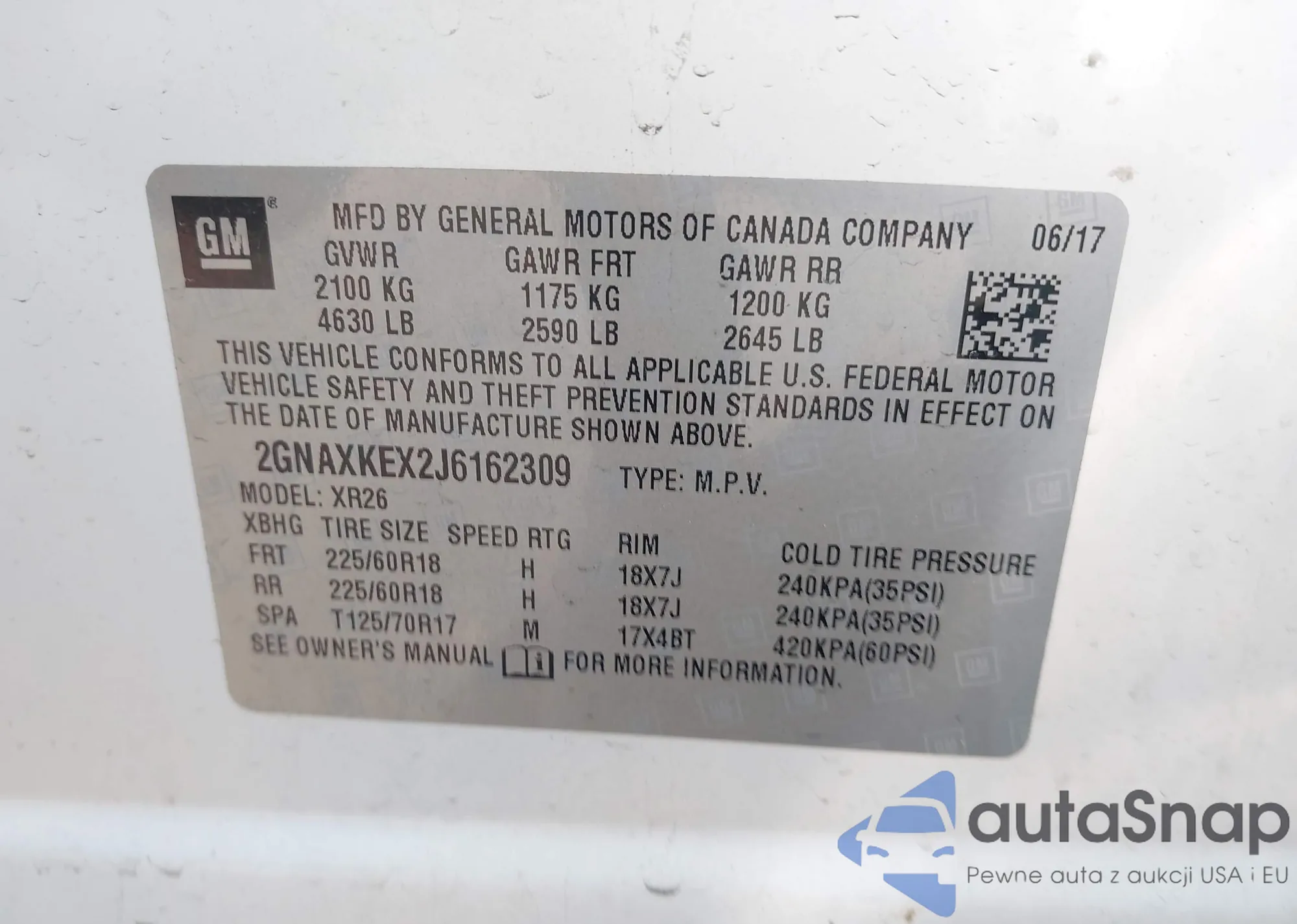• VIN 2GNAXKEX2J6162309