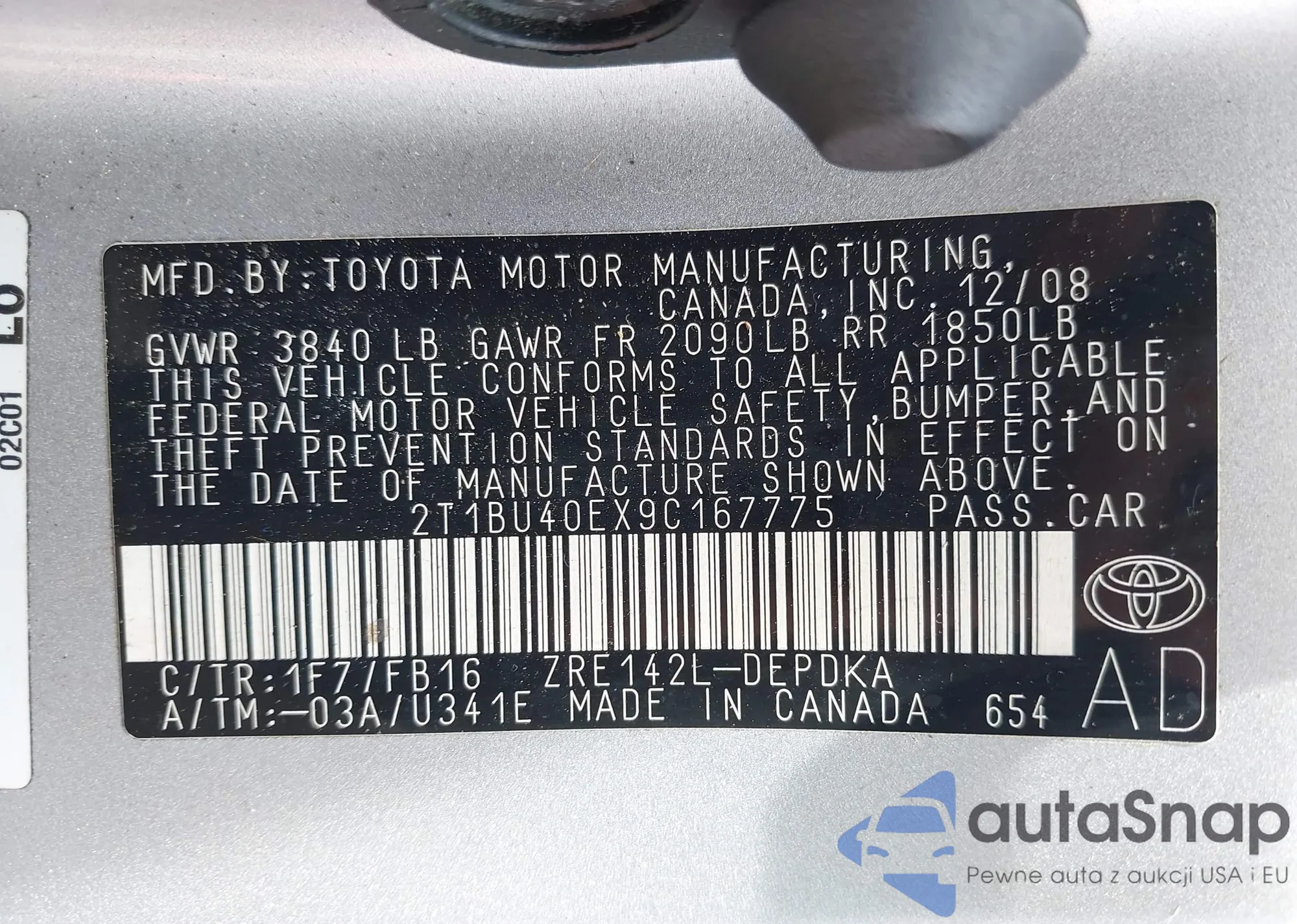 • VIN 2T1BU40EX9C167775