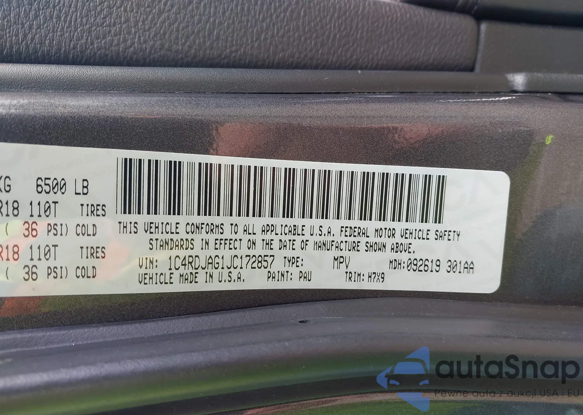 • VIN 1C4RDJAG1JC172857