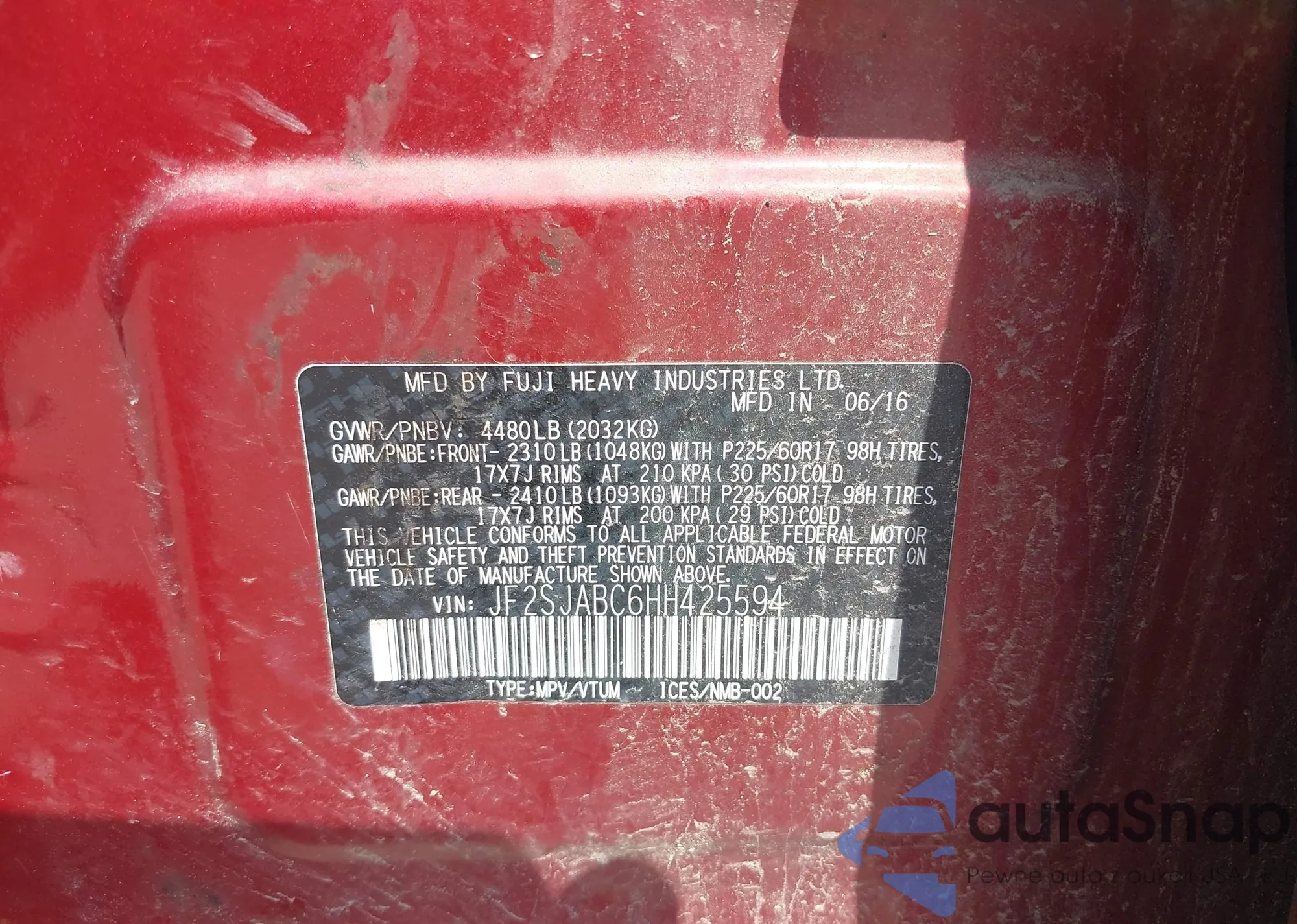 • VIN JF2SJABC6HH425594