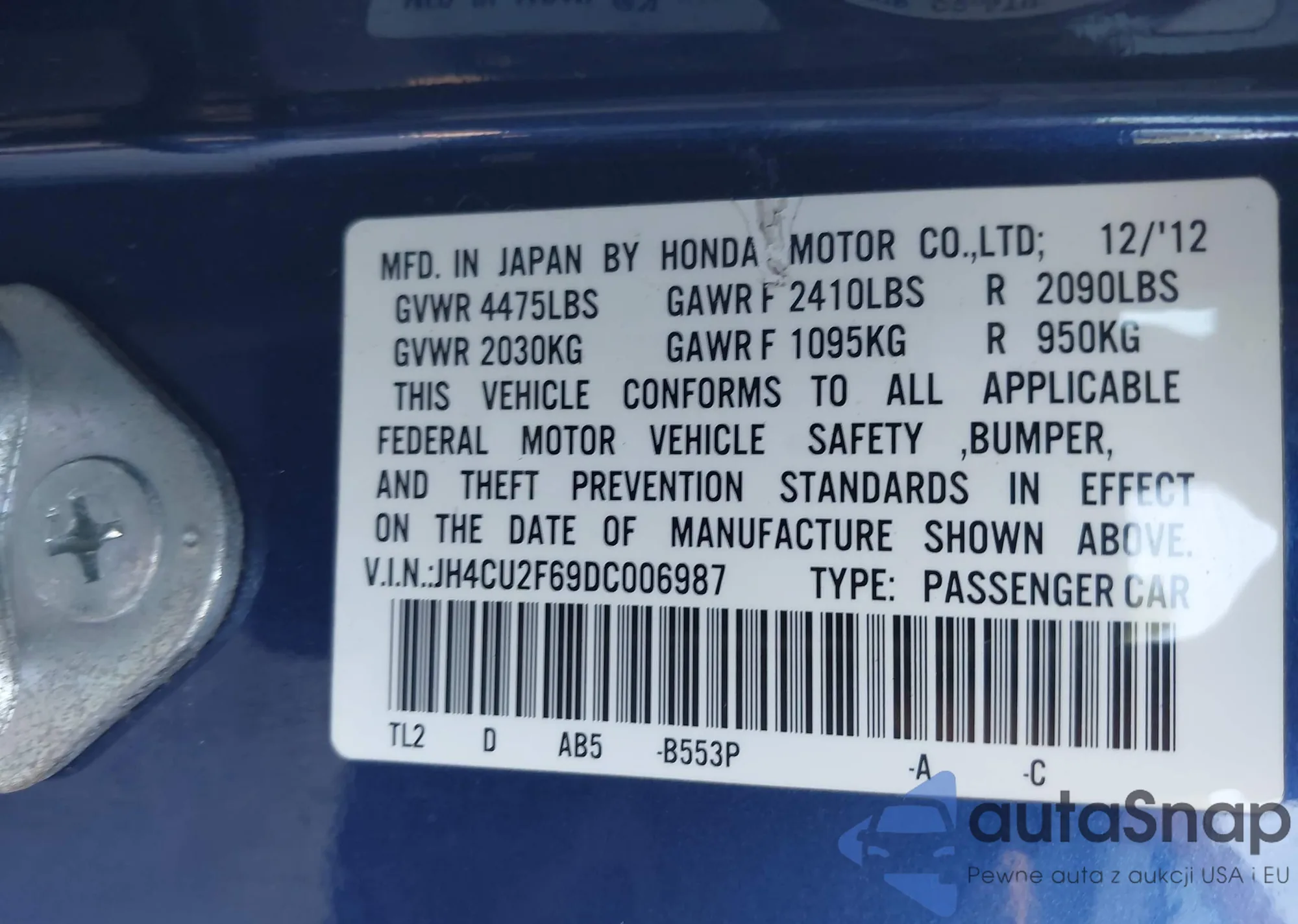 • VIN JH4CU2F69DC006987