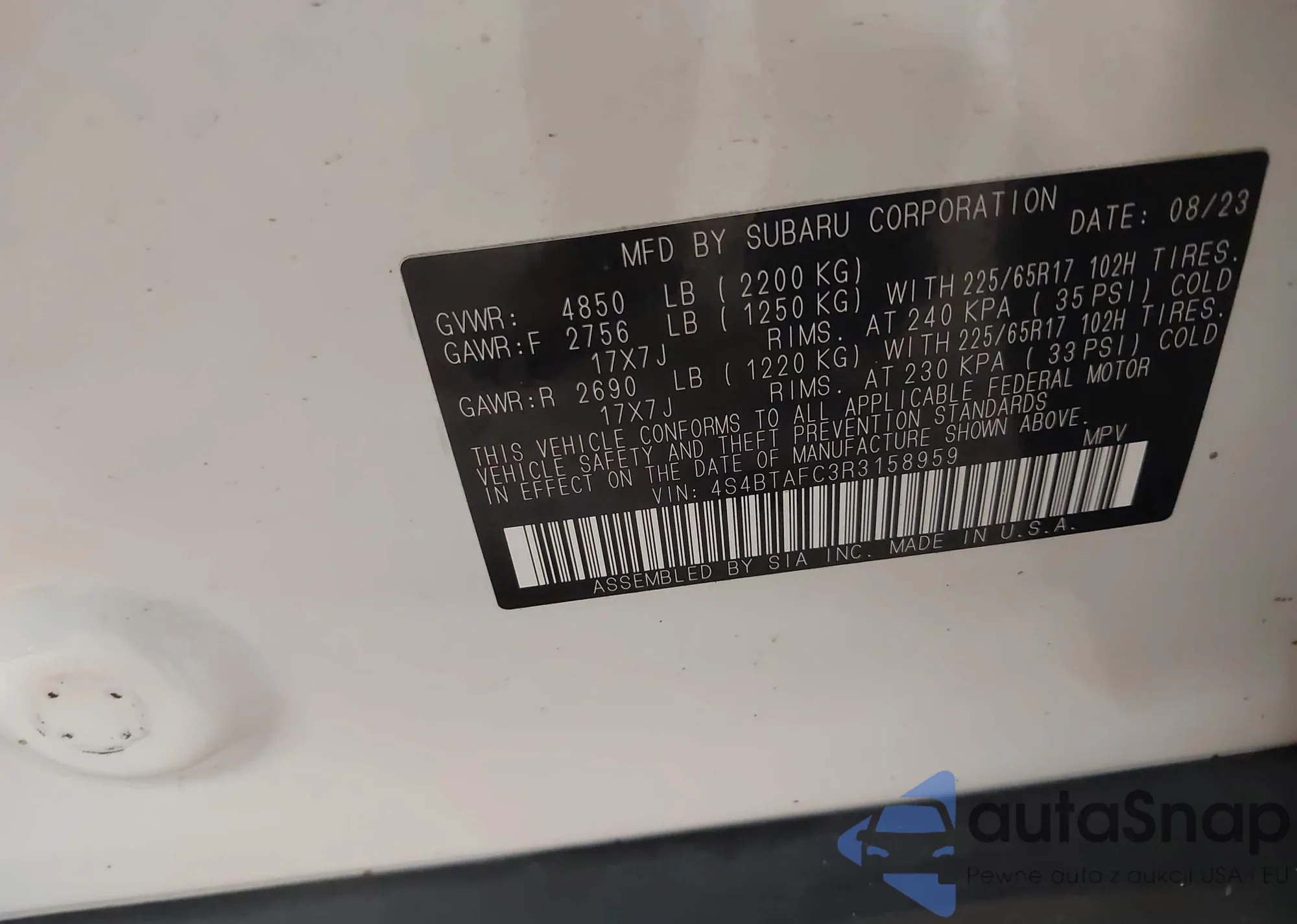 • VIN 4S4BTAFC3R3158959
