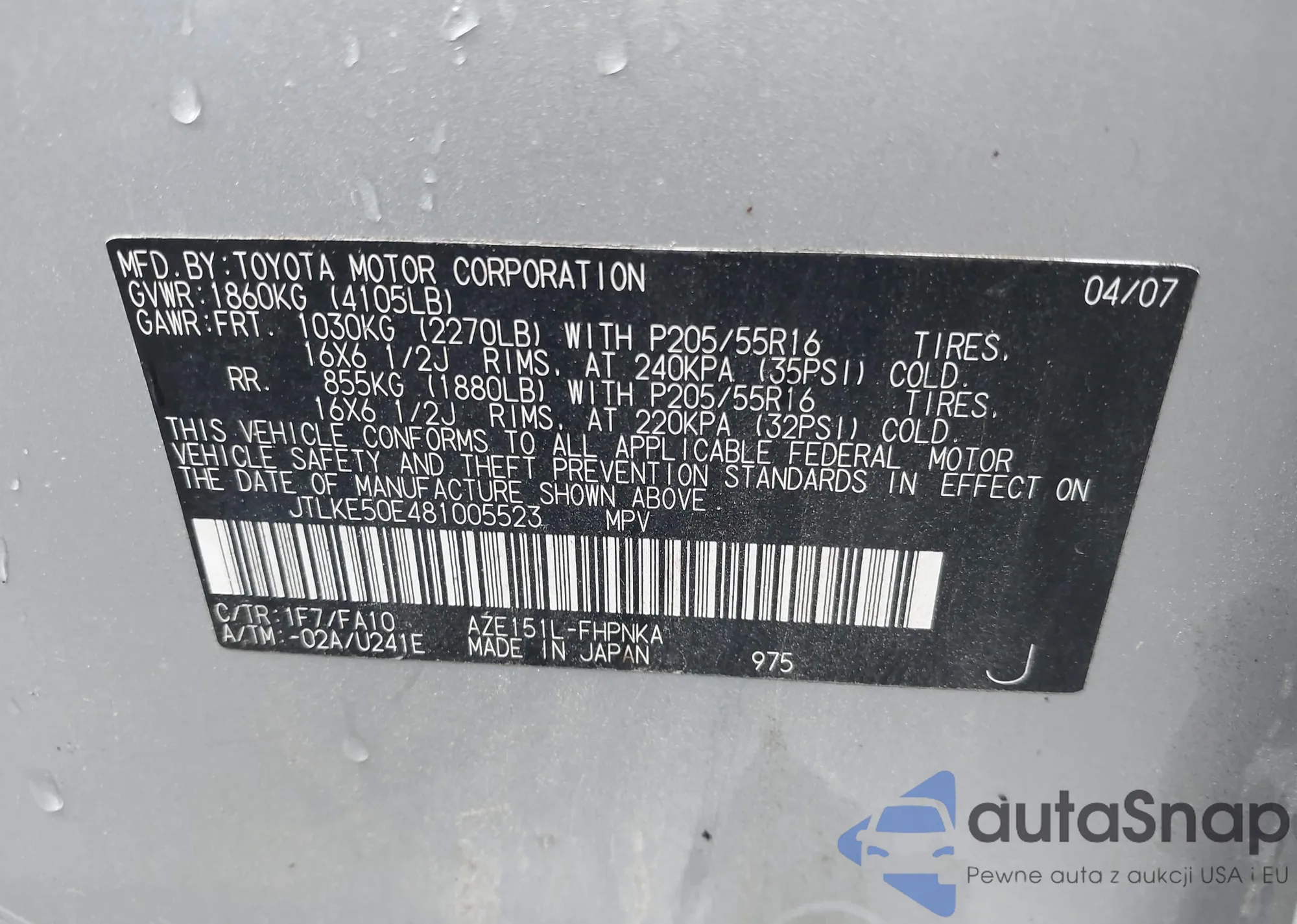 • VIN JTLKE50E481005523