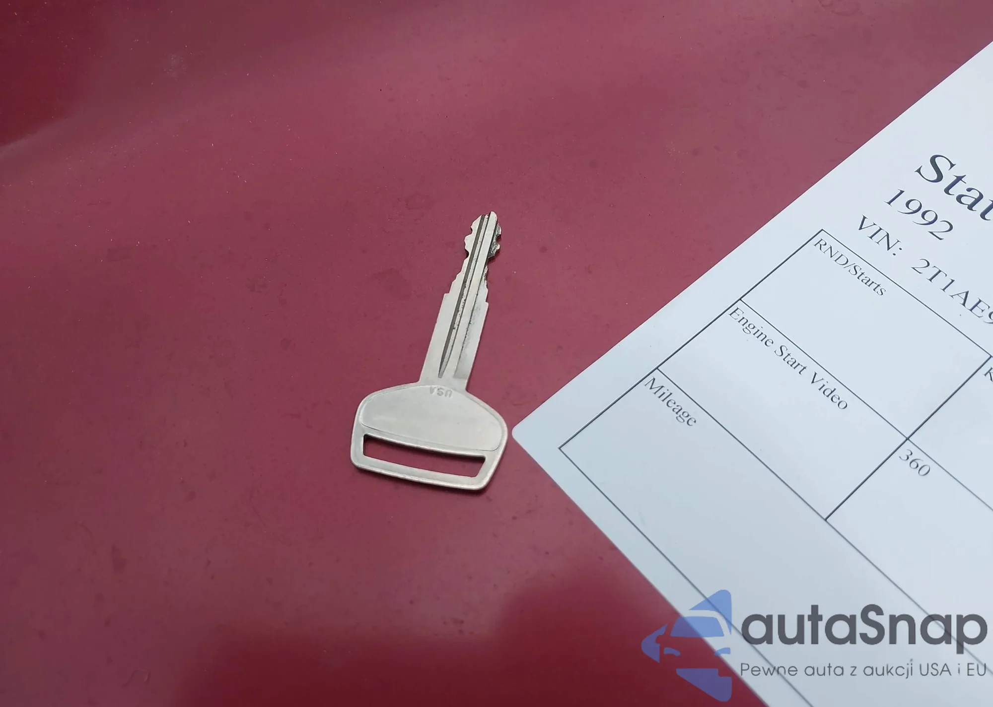 1992 Toyota Corolla Dlx z USA, uszkodzony, nr VIN 2T1AE94A6NC192891