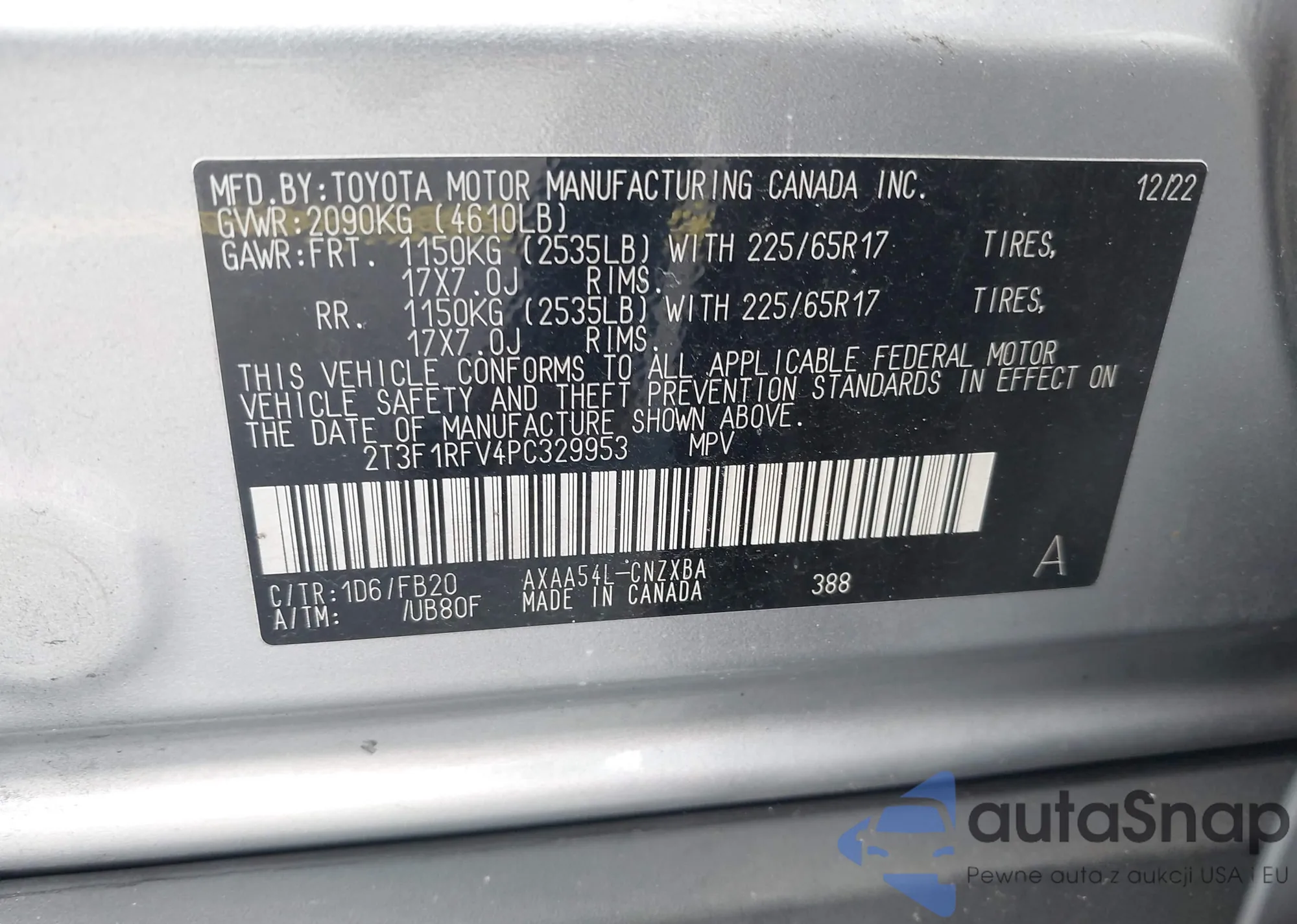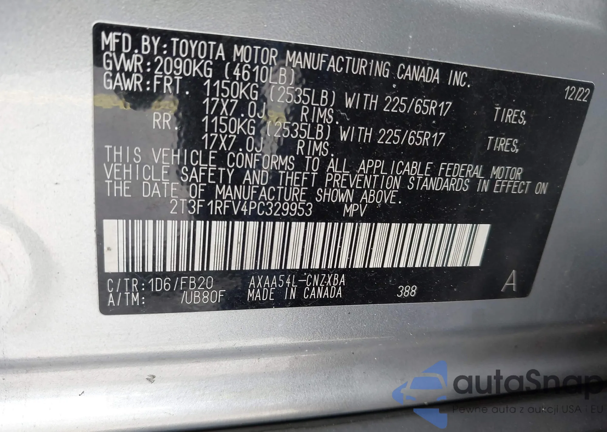 LOT: 42408035 VIN: 2T1AE94A6NC192891