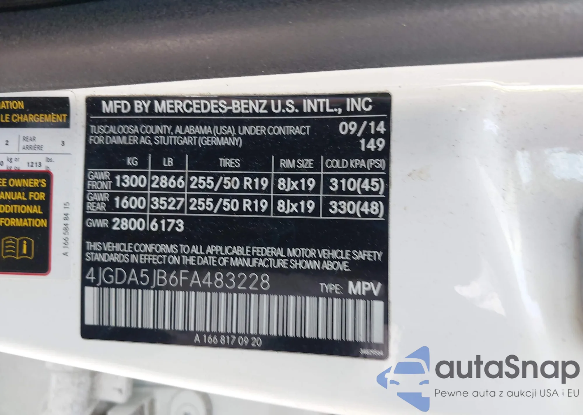 • VIN 4JGDA5JB6FA483228
