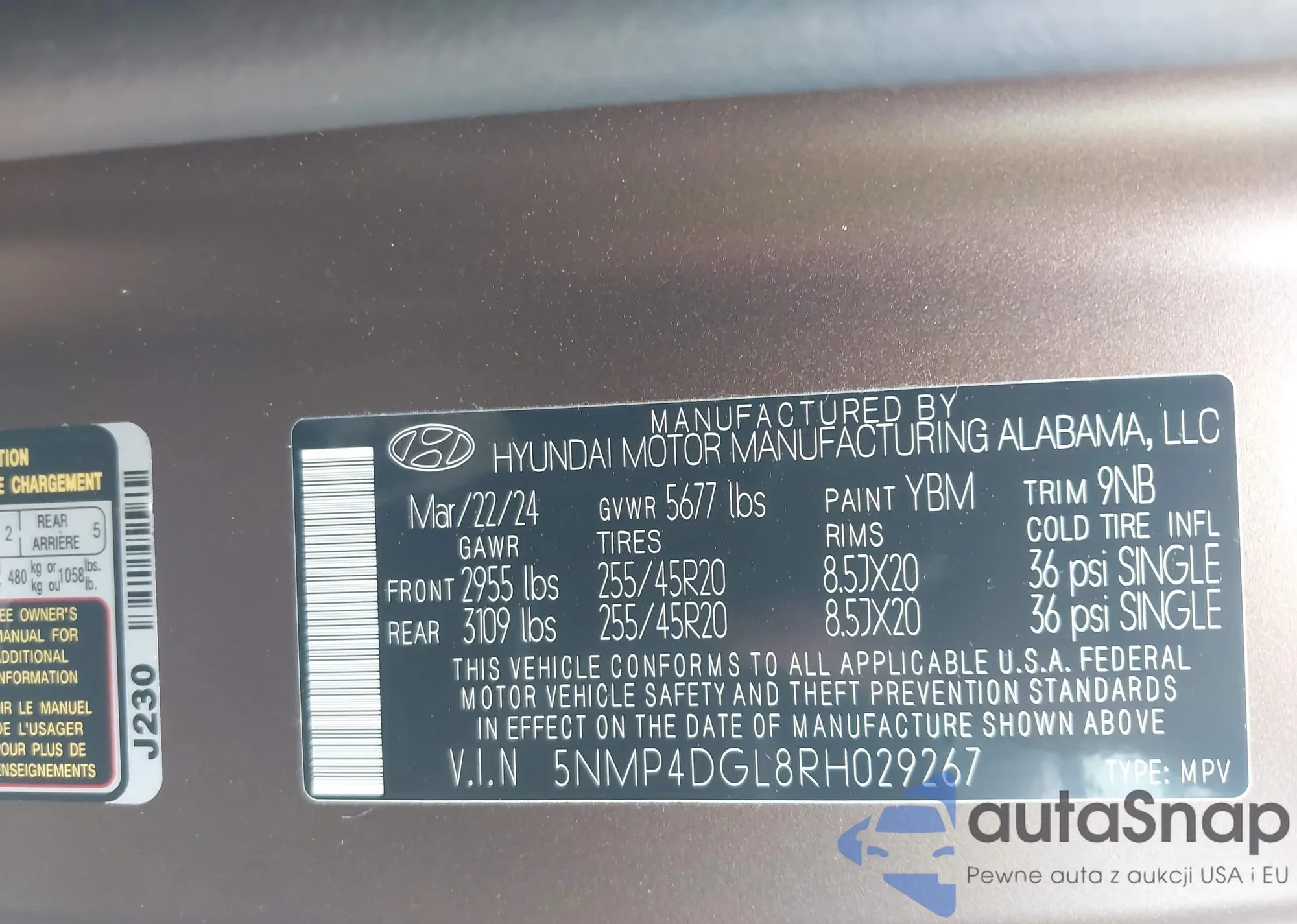 LOT: 42699283 VIN: 5NMP4DGL8RH029267
