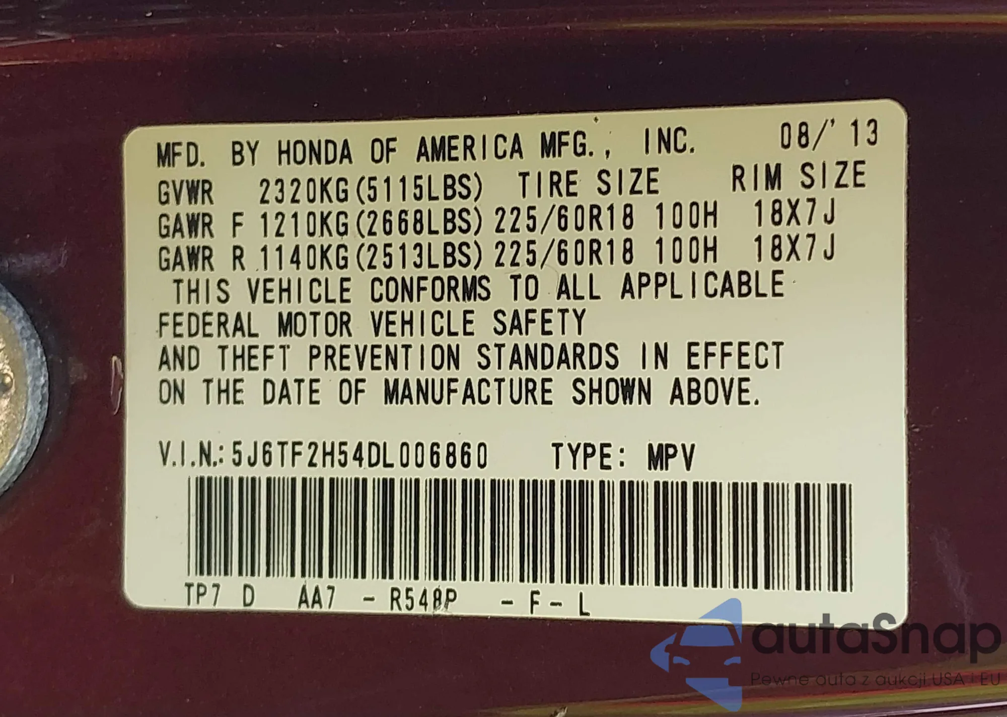 • VIN 5NMJF3DE7SH512819
