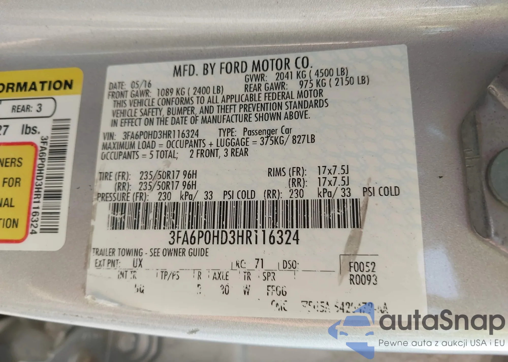 • VIN 3FA6P0HD3HR116324